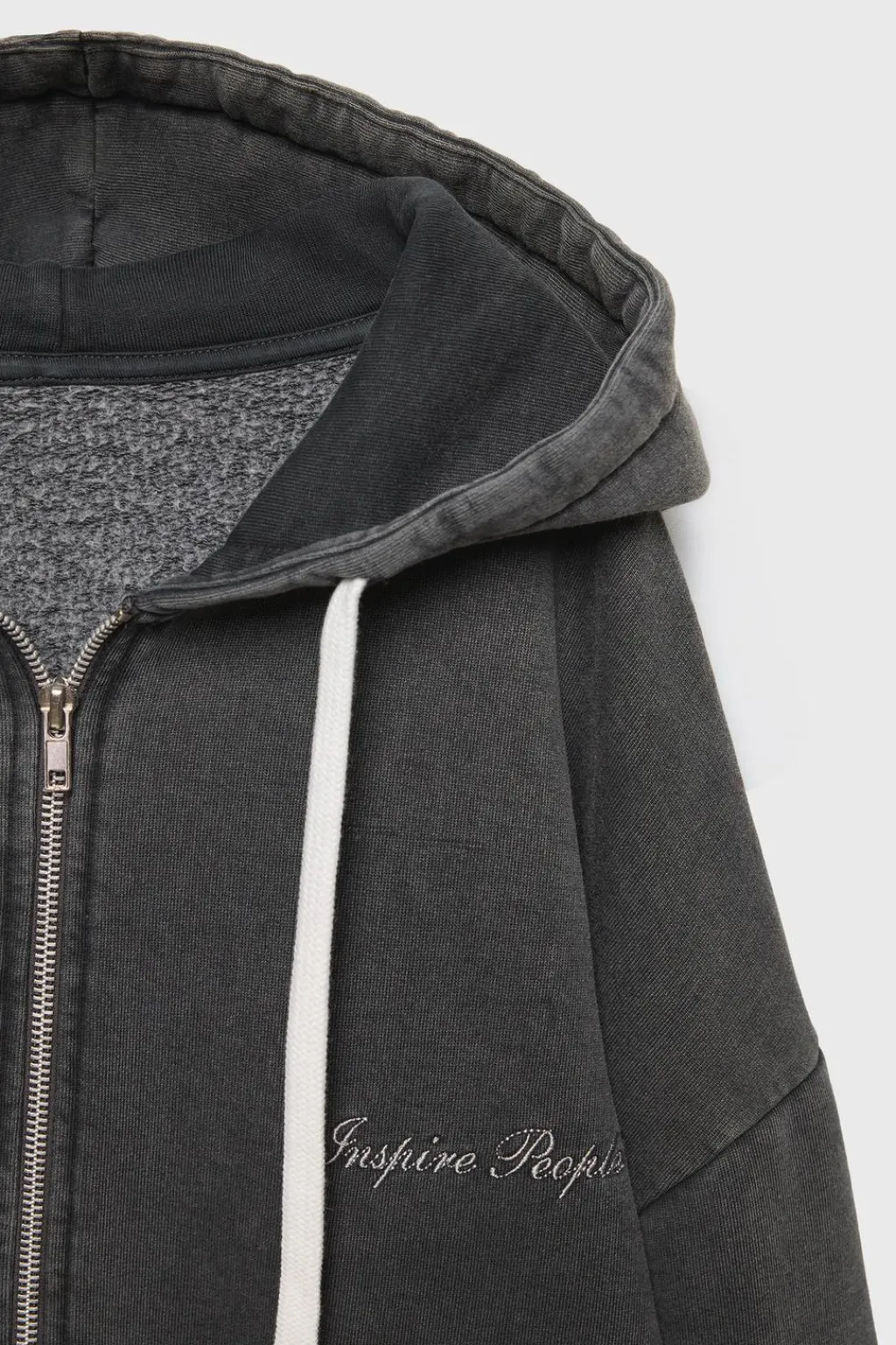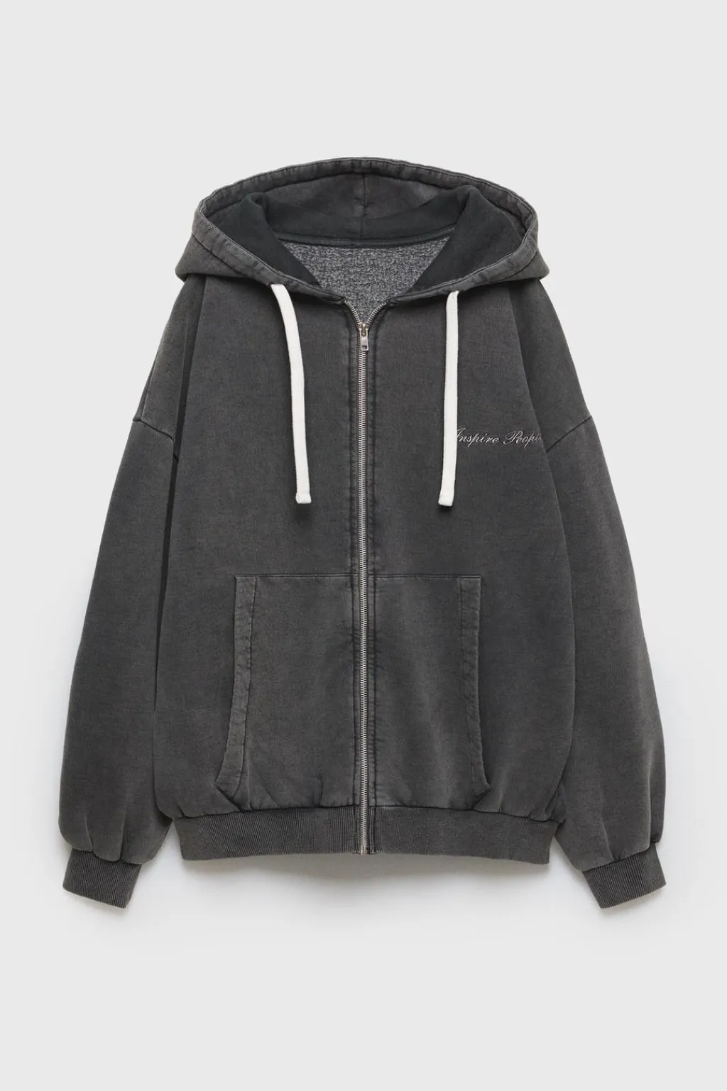 Sudadera con fit oversize, con capucha y manga larga acabada en puño. Cierre cremallera frontal. Bolsillos de tipo palstrón en delantero. Detalle texto bordado en pechera.