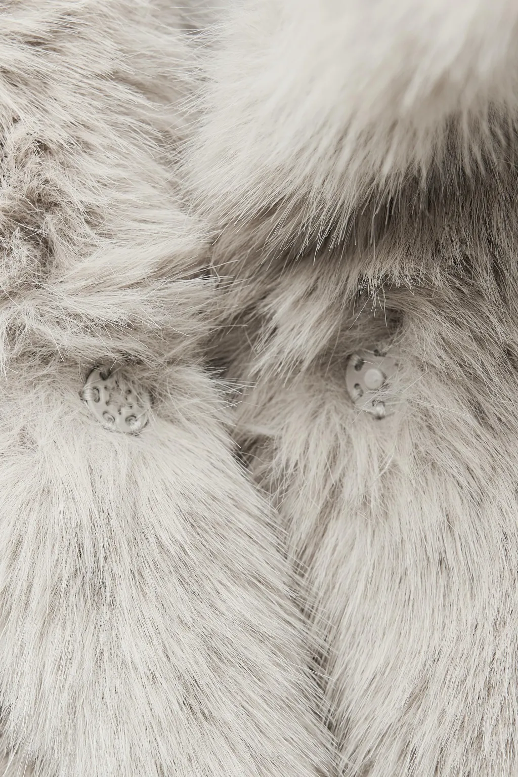 Abrigo corto de cuello subido y manga larga. Bolsillos laterales ocultos en costura. Forro interior combinado. Cierre frontal con ganchos metalicos forrados.