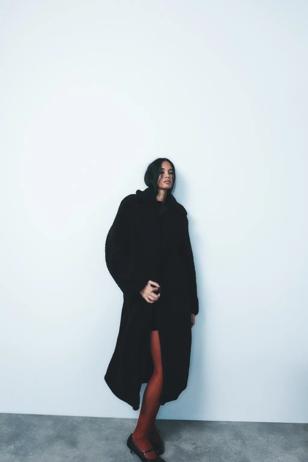 Abrigo largo de cuello solapa y manga larga. Bolsillos laterales ocultos en costura. Forro interior. Cierre frontal con botones.