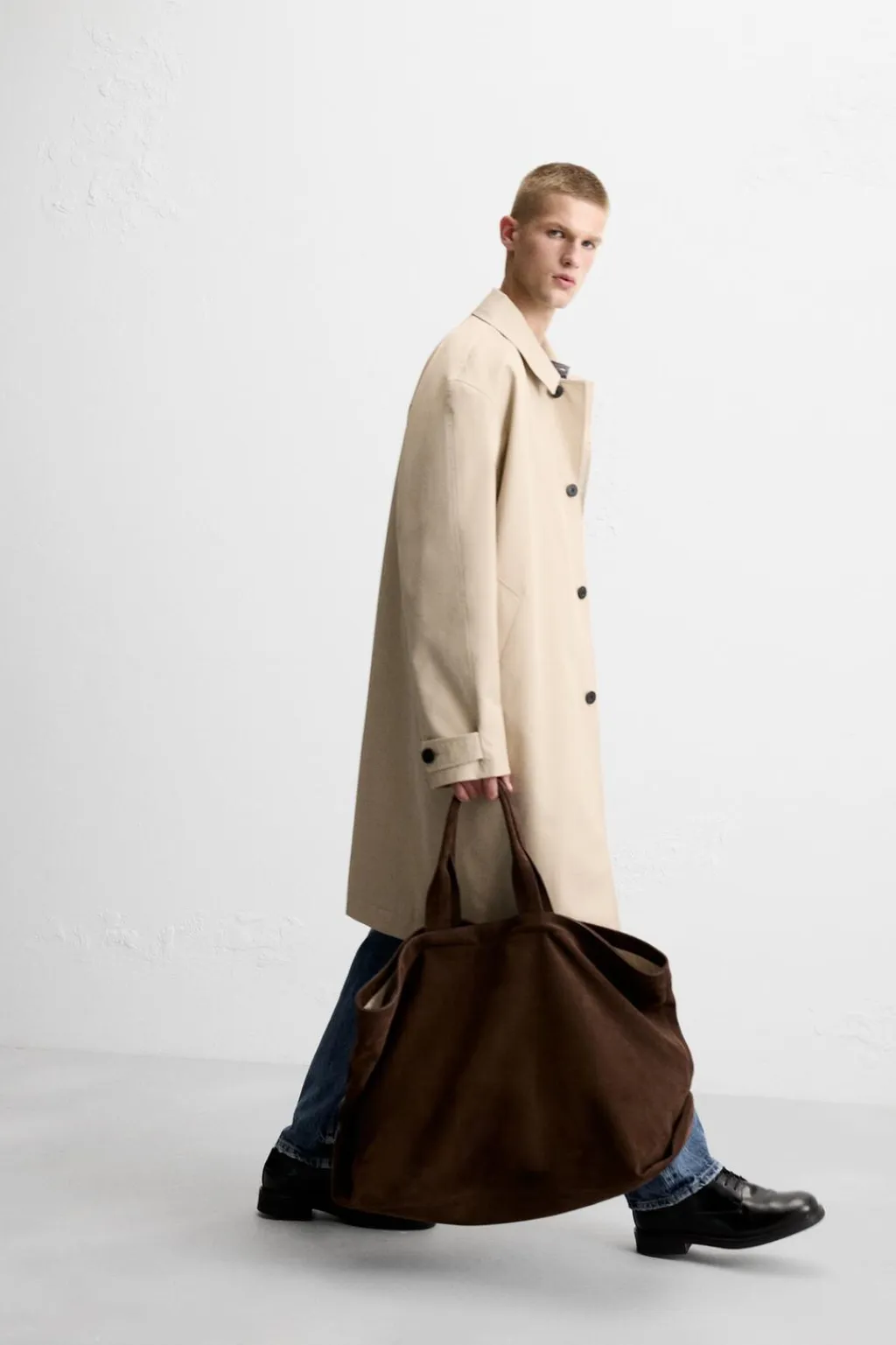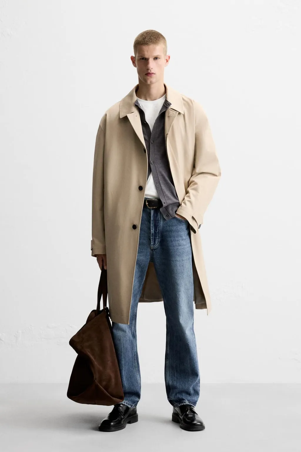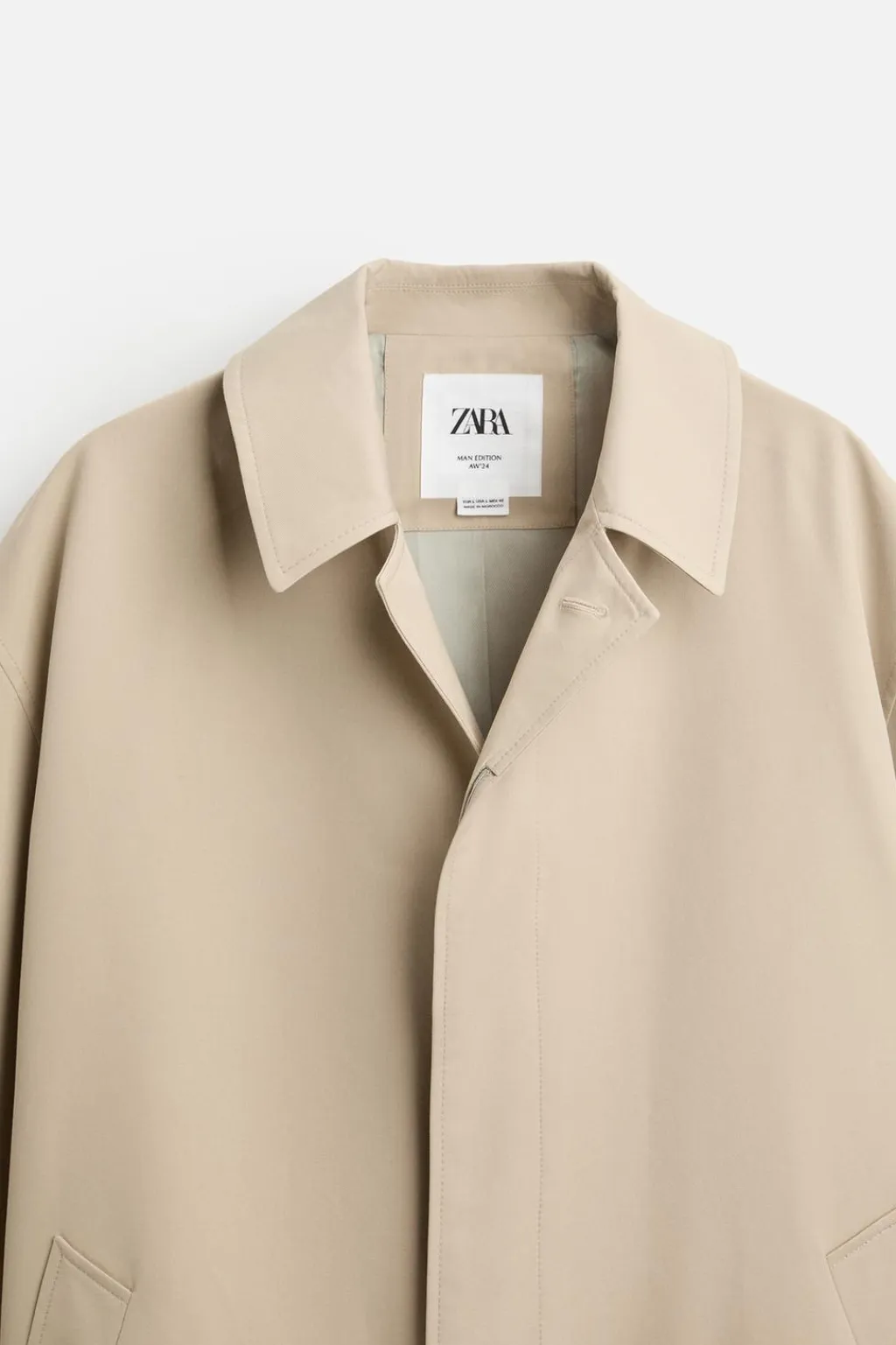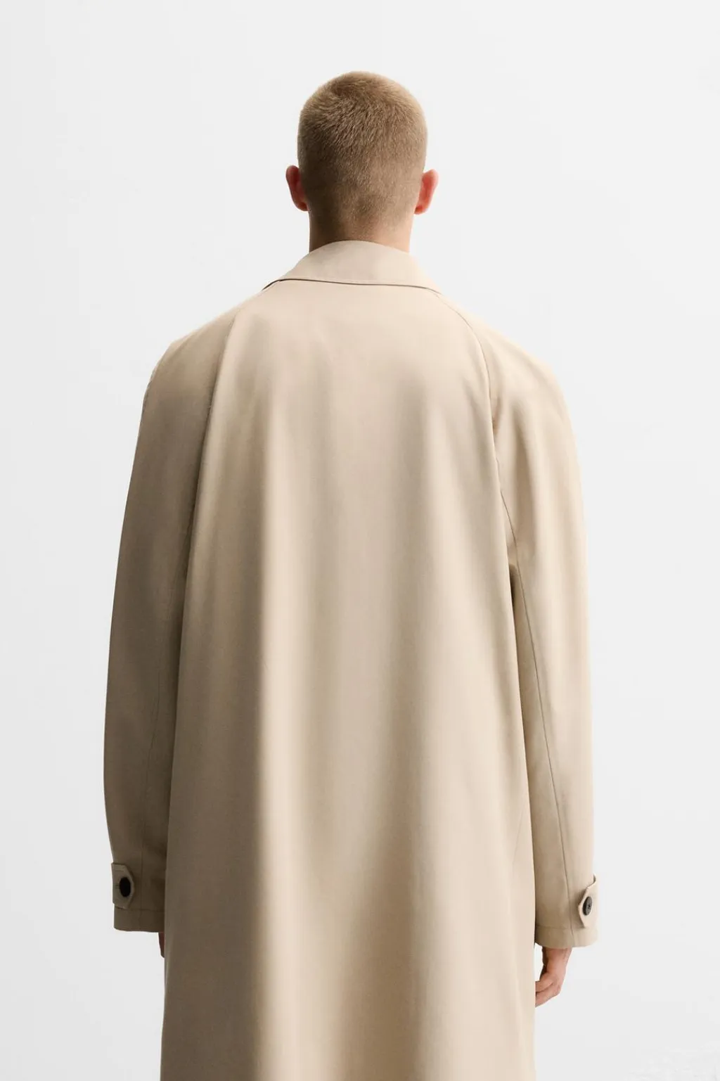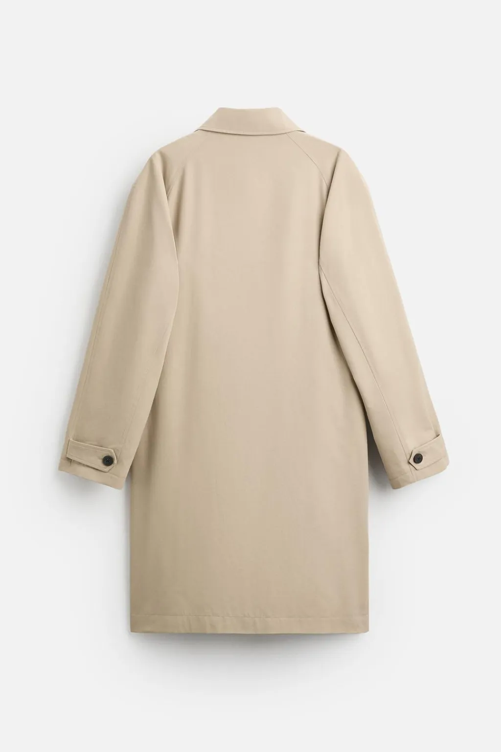 Abrigo ligero confeccionado en tejido técnico con lana. Cuello solapa y manga larga ajustable con trabilla. Bolsillos de vivo en cadera y detalle de bolsillo interior. Cierre frontal de botonadura oculta por solapa.