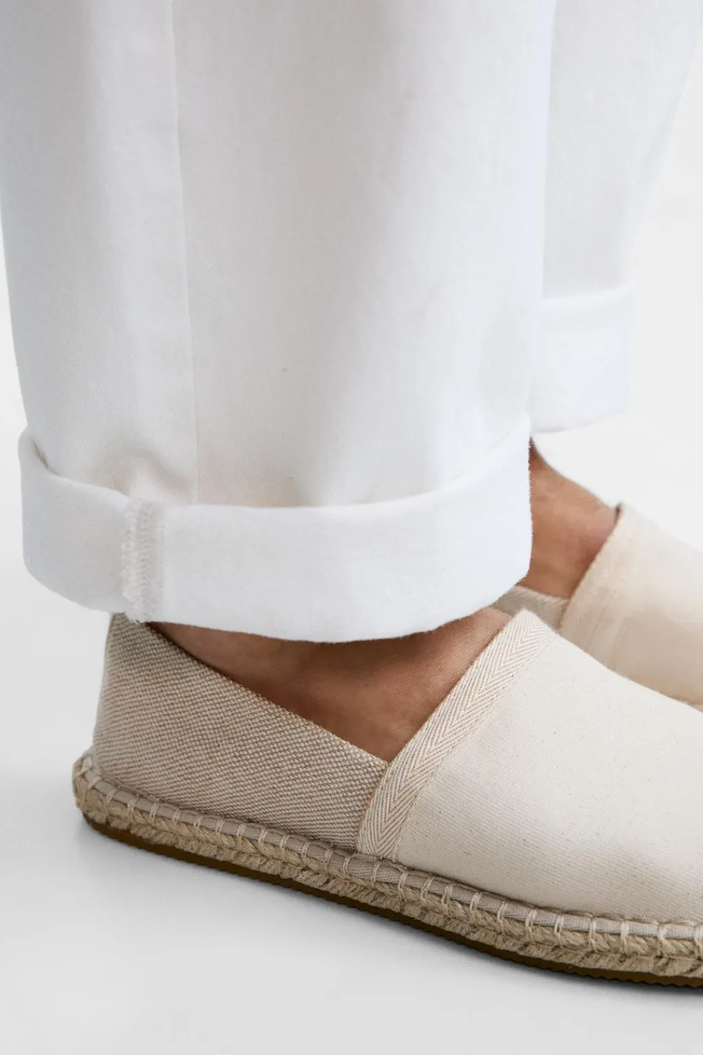 Alpargata fabricada en tejido de algodón. Tirador trasero para facilitar el calce. Suela recubierta de yute.
