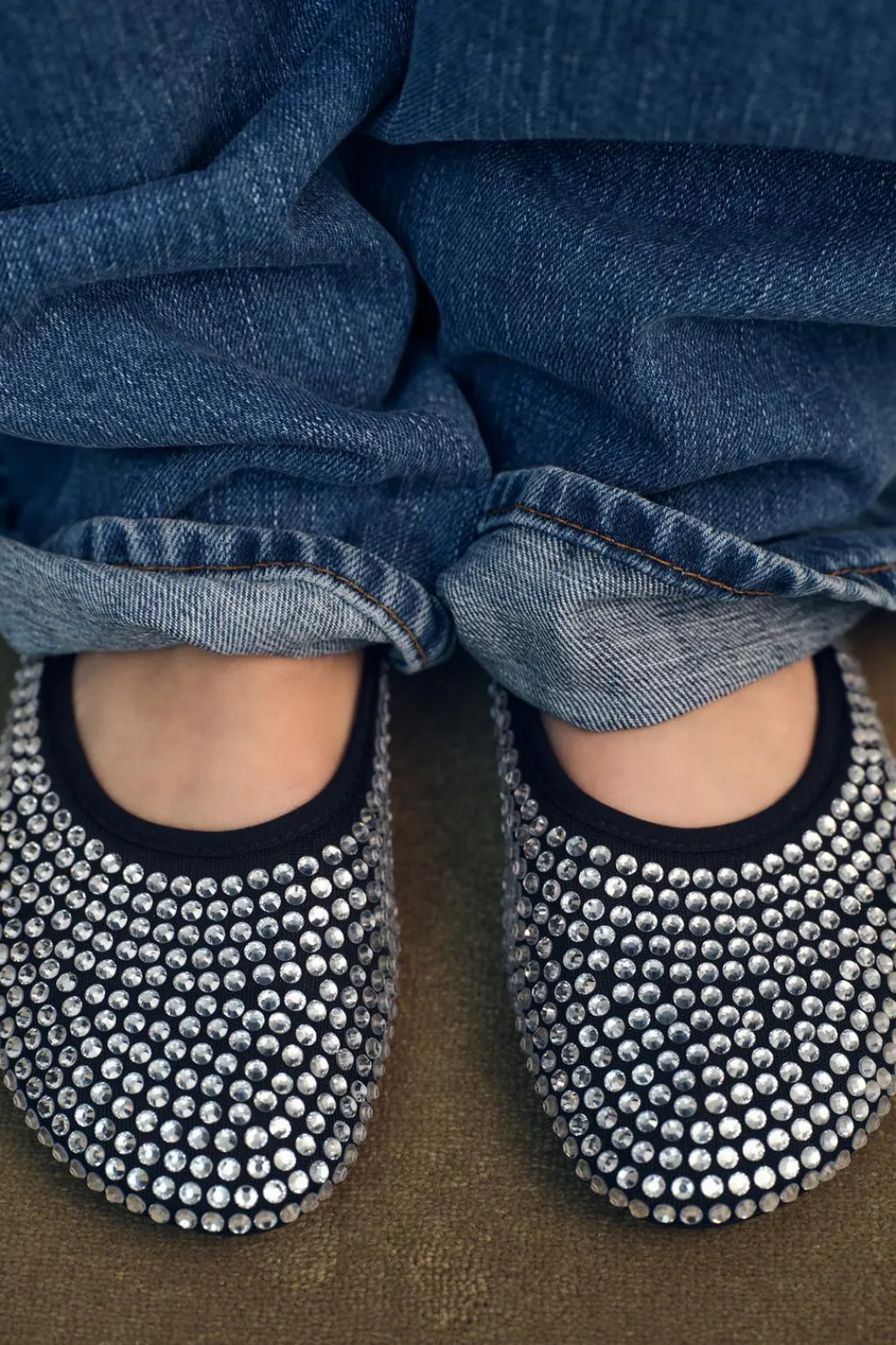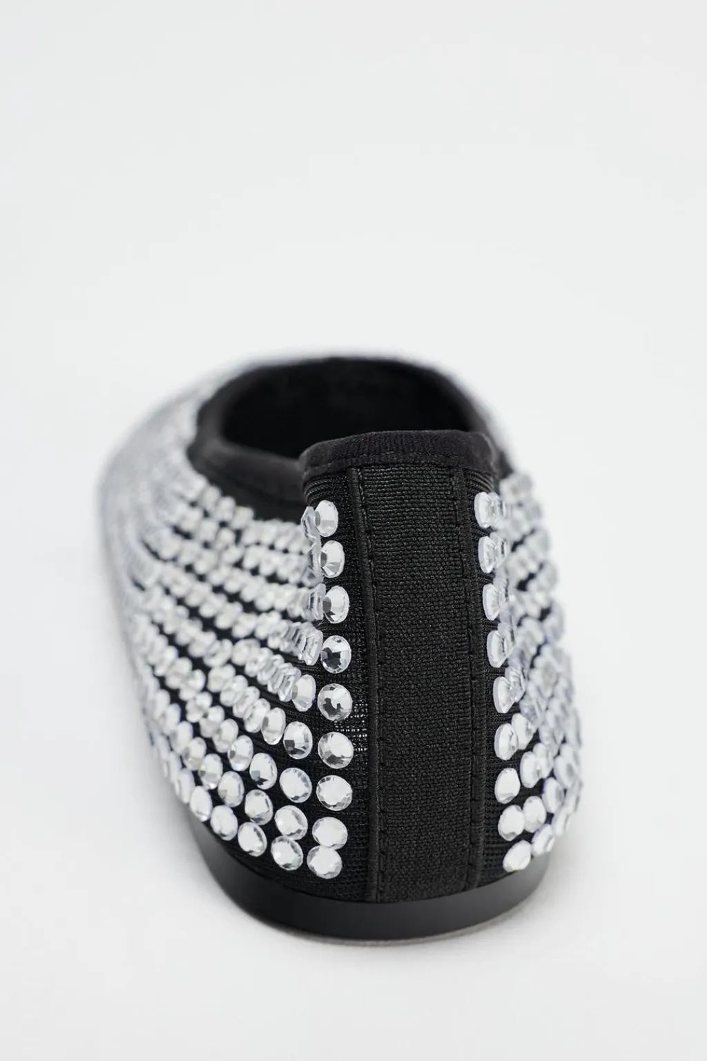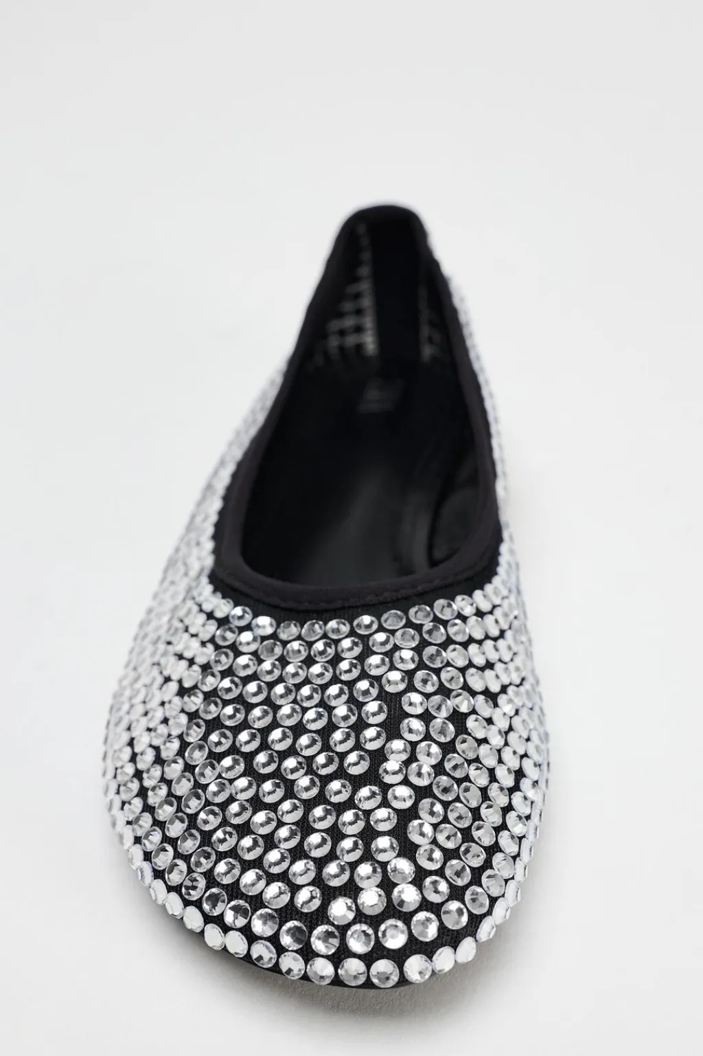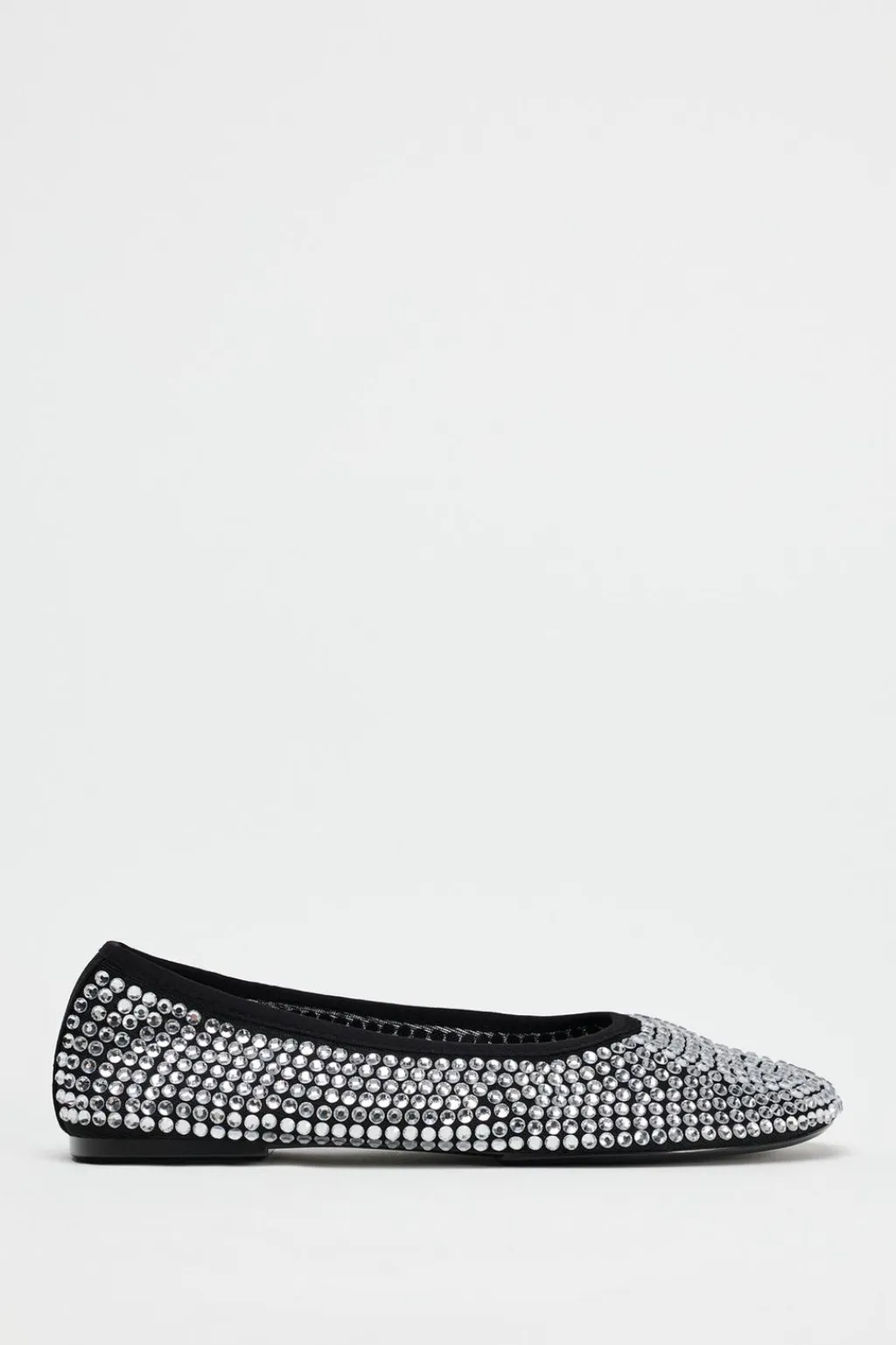 Zapato tipo bailarina con detalle de apliques brillantes en el cuerpo. Acabado en punta redonda.