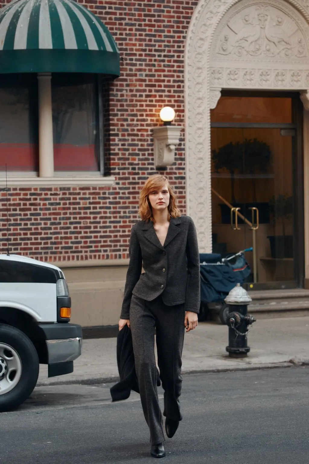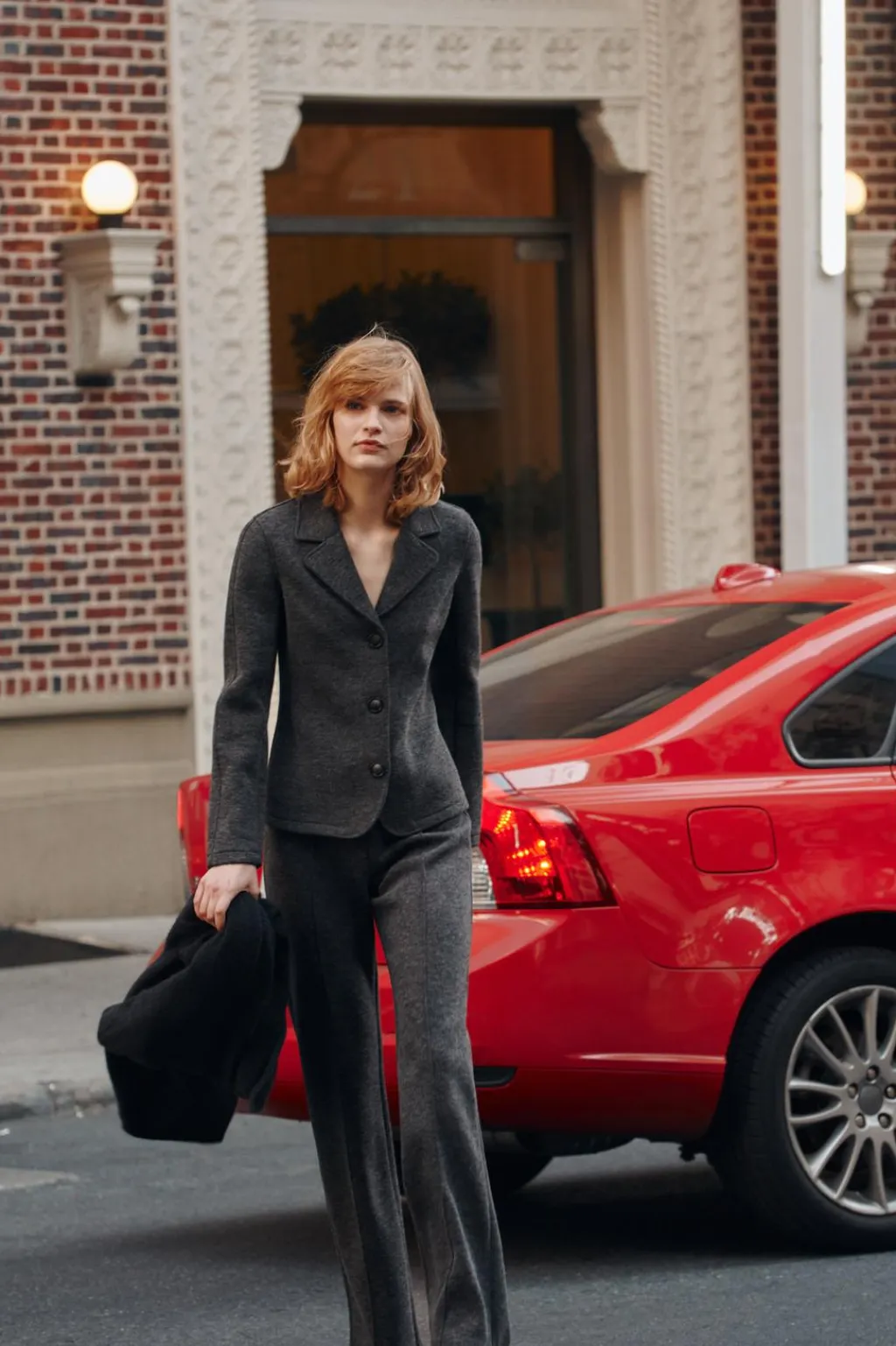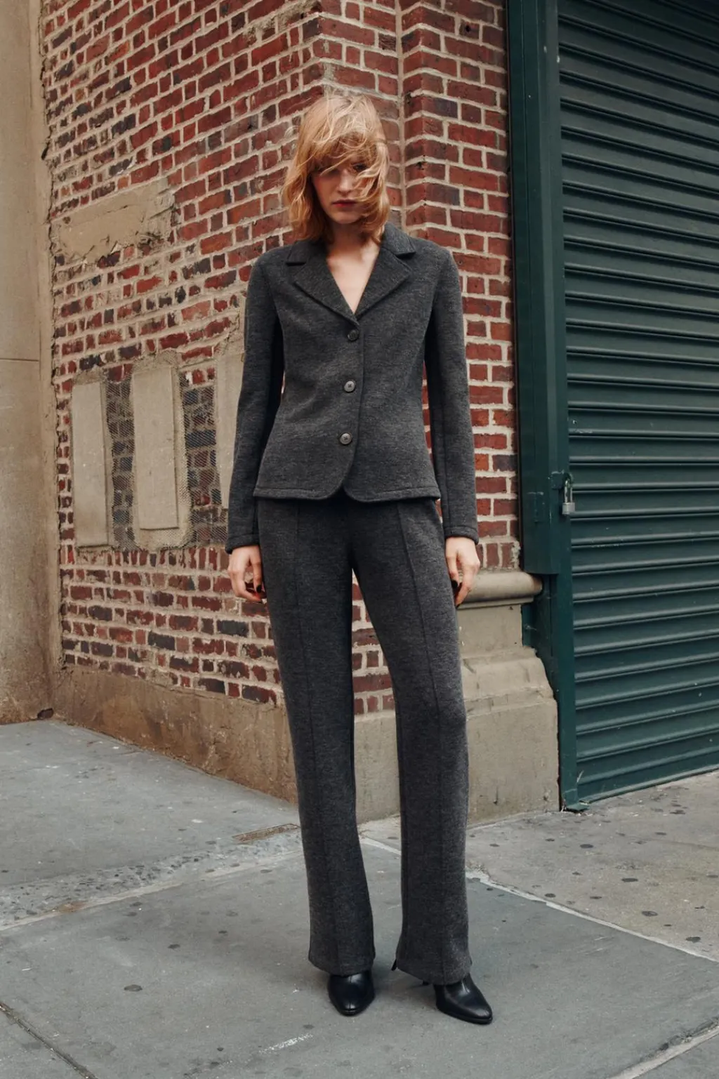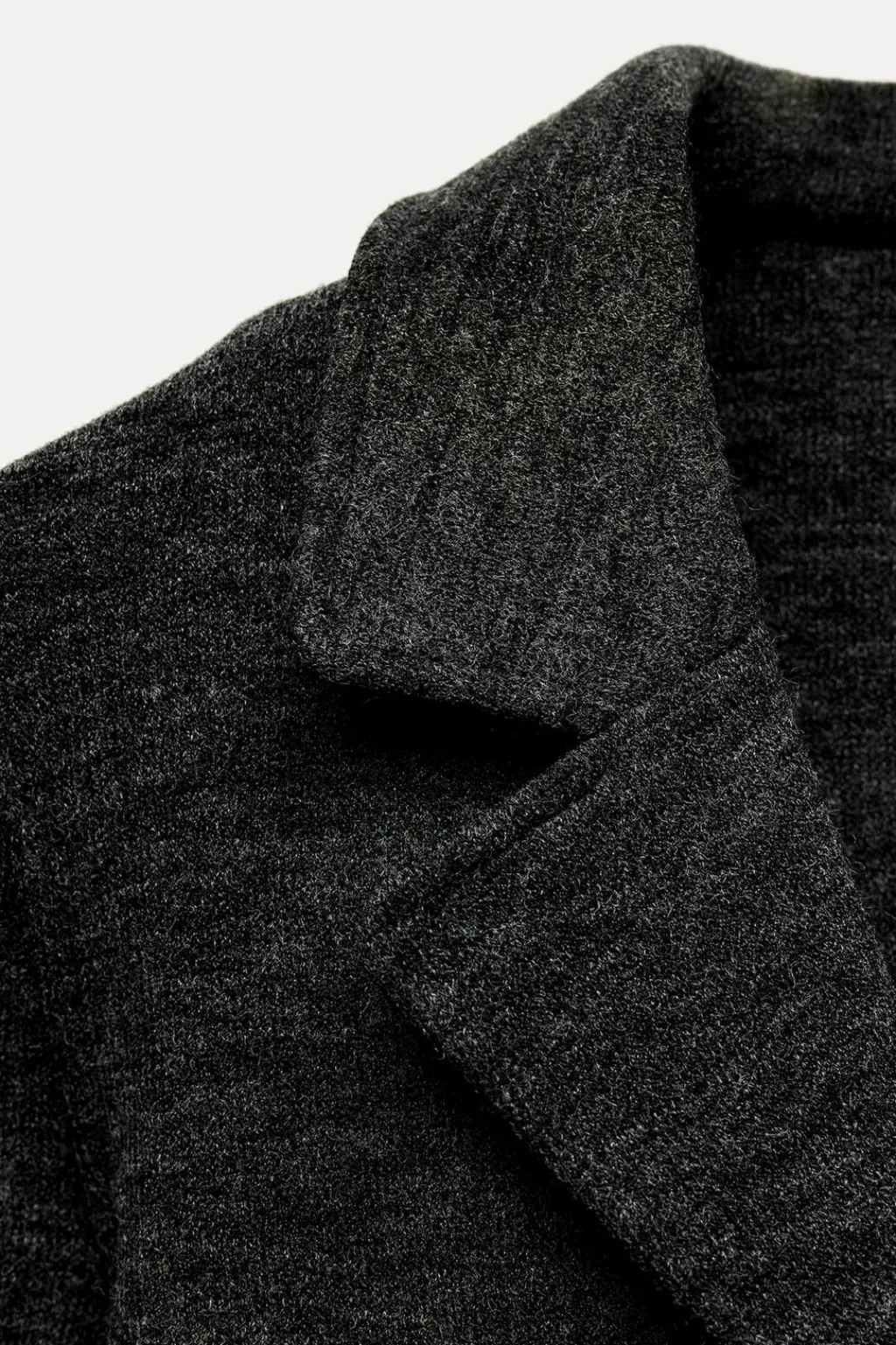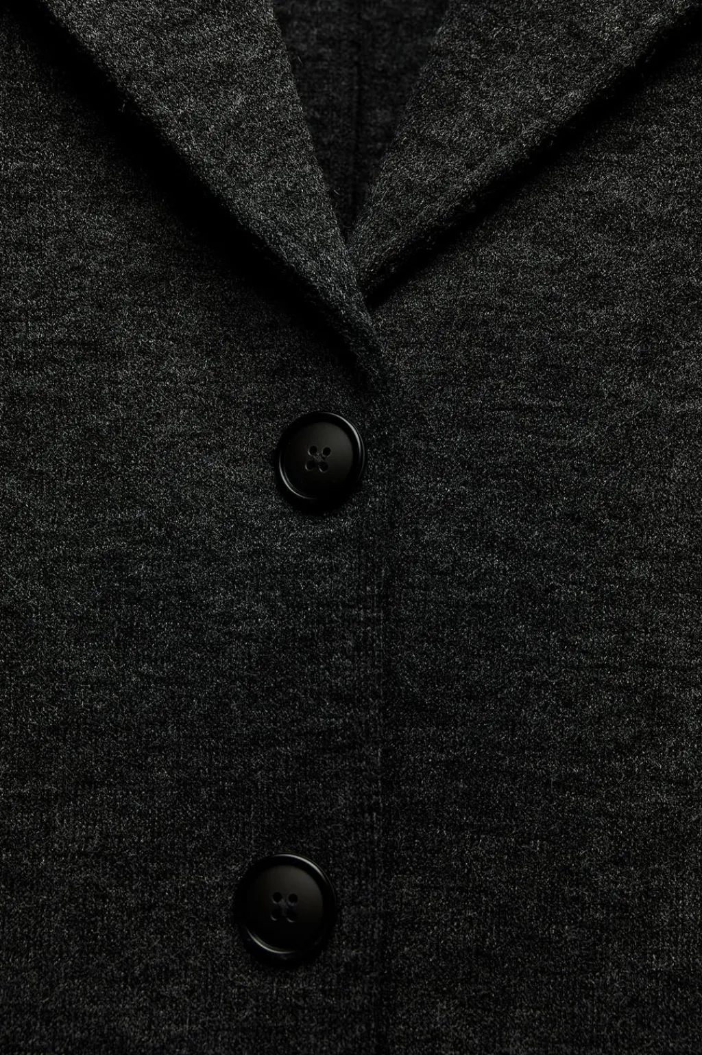 Blazer entallada con cuello solapa de muescas y manga larga. Cierre frontal con botones.