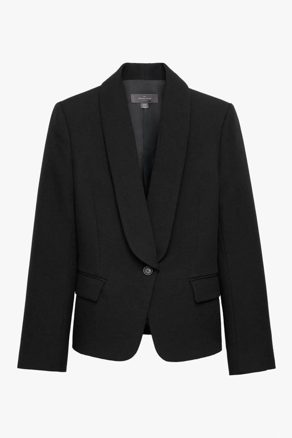 Blazer corta confeccionada en hilatura de lana 100%. Cuello smoking y manga larga acabada en abertura. Bolsillos con solapa en delantero. Forro interior a tono. Cierre frontal con botón.