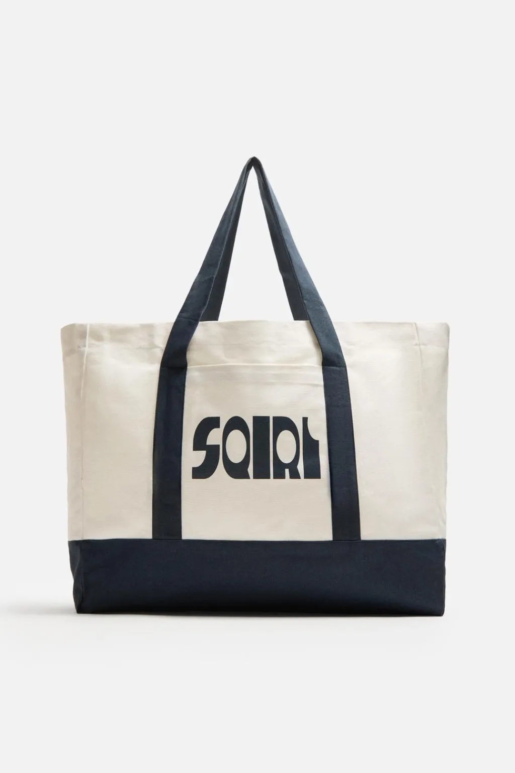 Bolso tipo shopper confeccionado en tejido de algodón. Compartimento principal sin cierre. Bolsillo plano en su interior. Parte frontal con bolsillo plano y estampación combinado a contraste Dos asas de hombro en el mismo tejido.