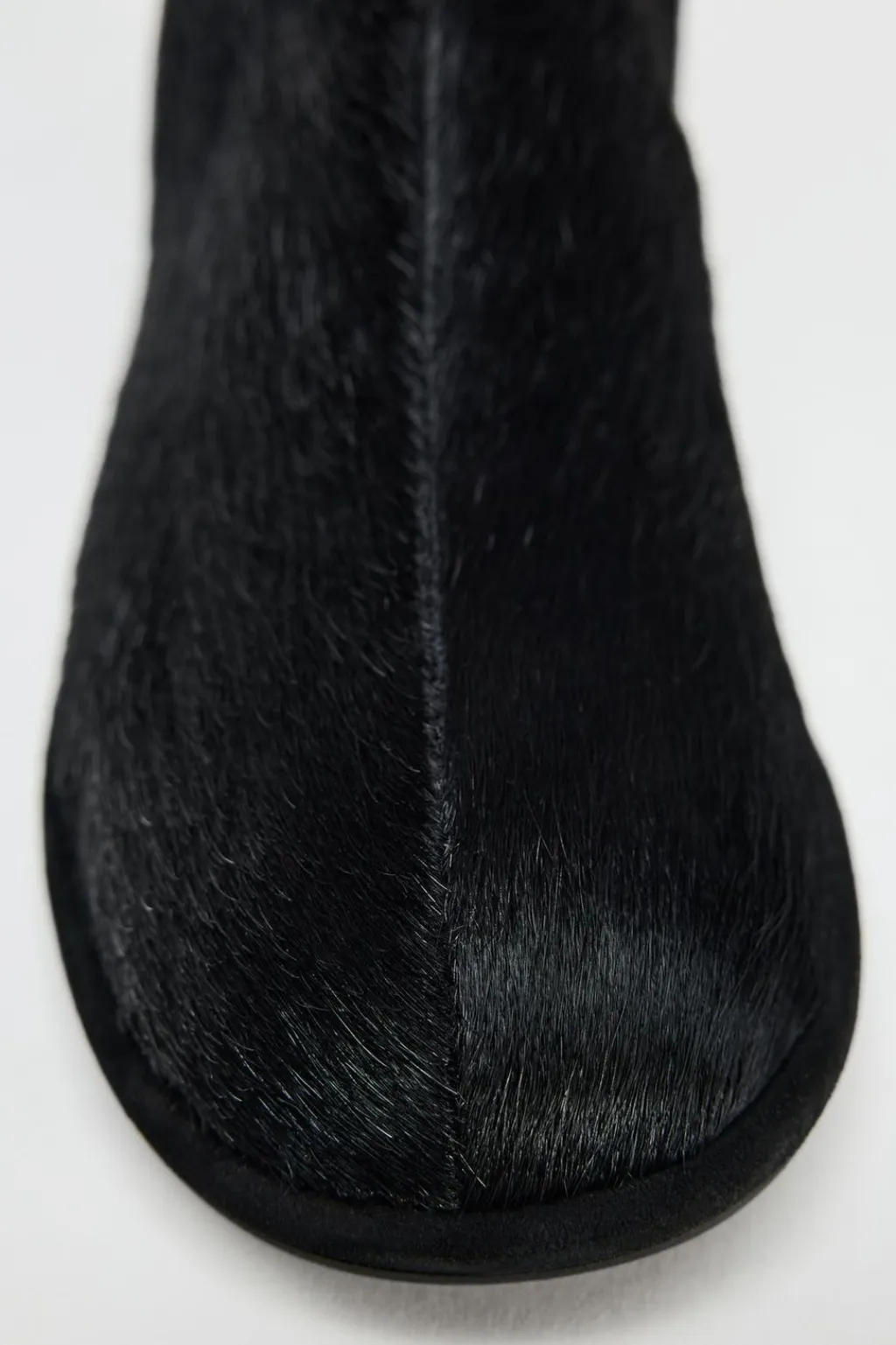 Botín plano en piel con pelo. Cierre mediante cremallera.Acabado en punta redonda.