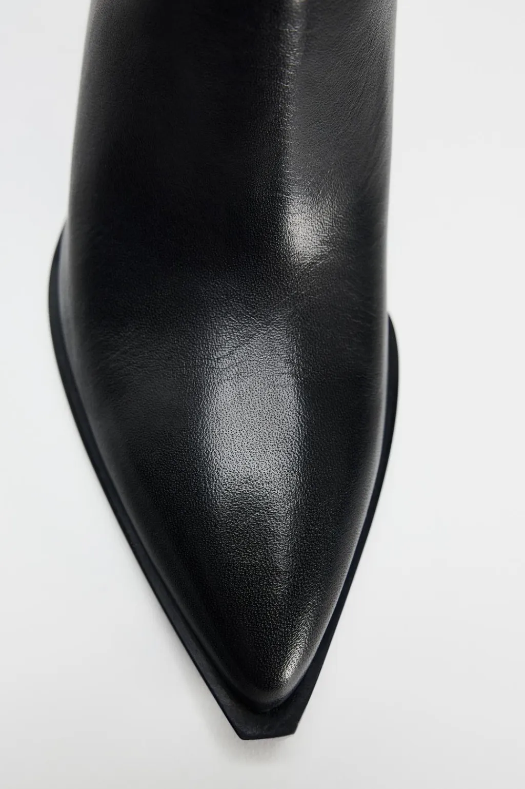 Zapato tipo botín con tacón ancho en piel. Acabado en punta. Cierre mediante cremallera.
