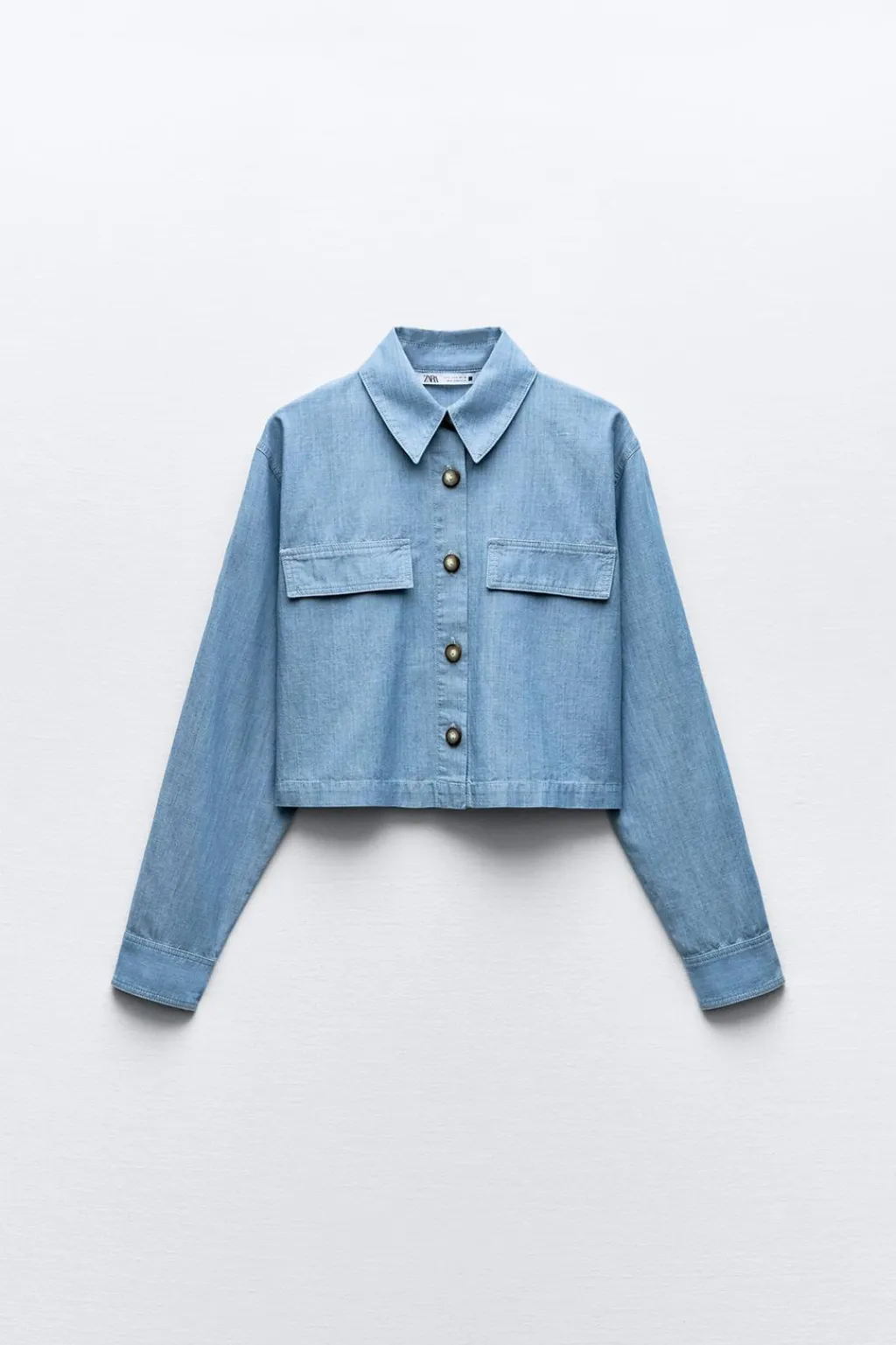 Camisa de cuello solapa y manga larga. Detalle de tapetas delanteras. Cierre frontal con botones.
