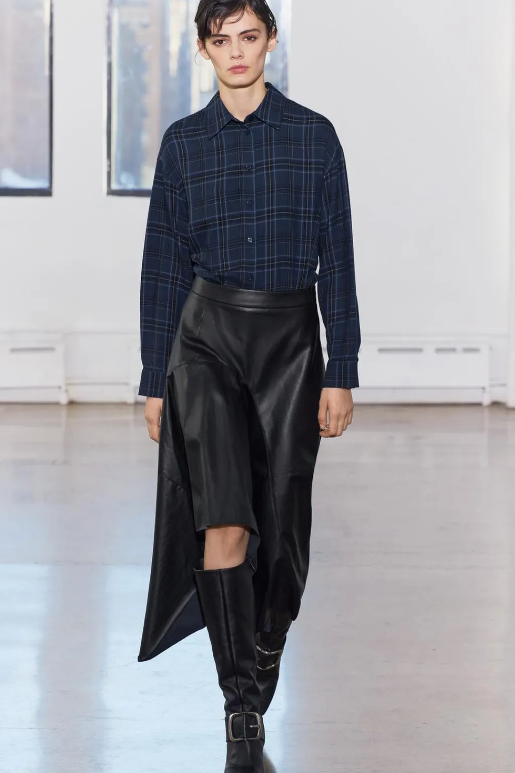 Camisa confeccionada en hilatura de viscosa 100%. Cuello solapa y manga larga acabada en puño. Bajo asimétrico redondeado. Cierre frontal con botones.