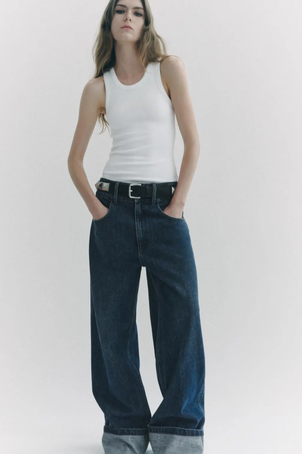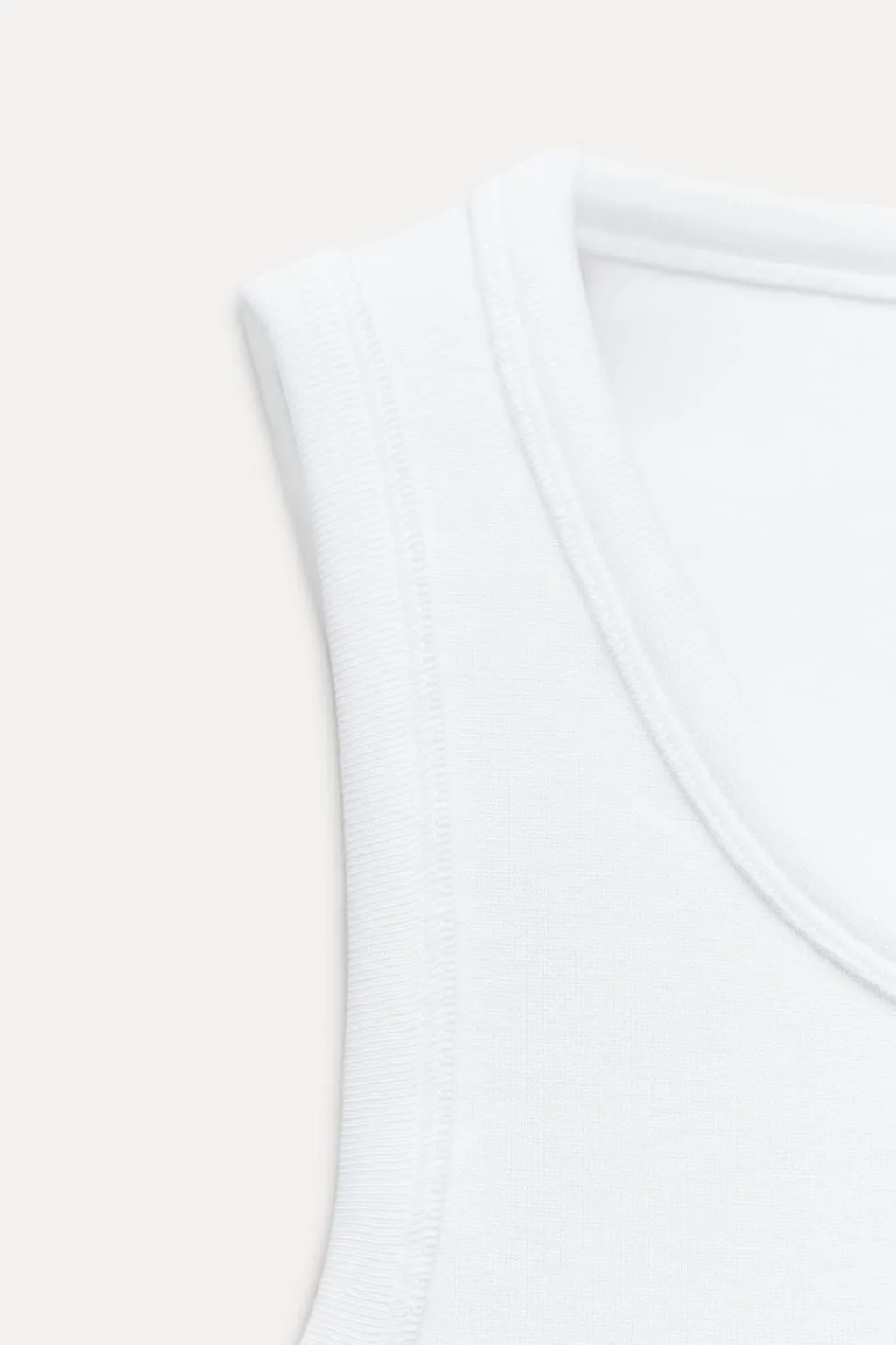 Camiseta confeccionada en hilatura con mezcla de lyocell. Escote redondo y manga sisa.