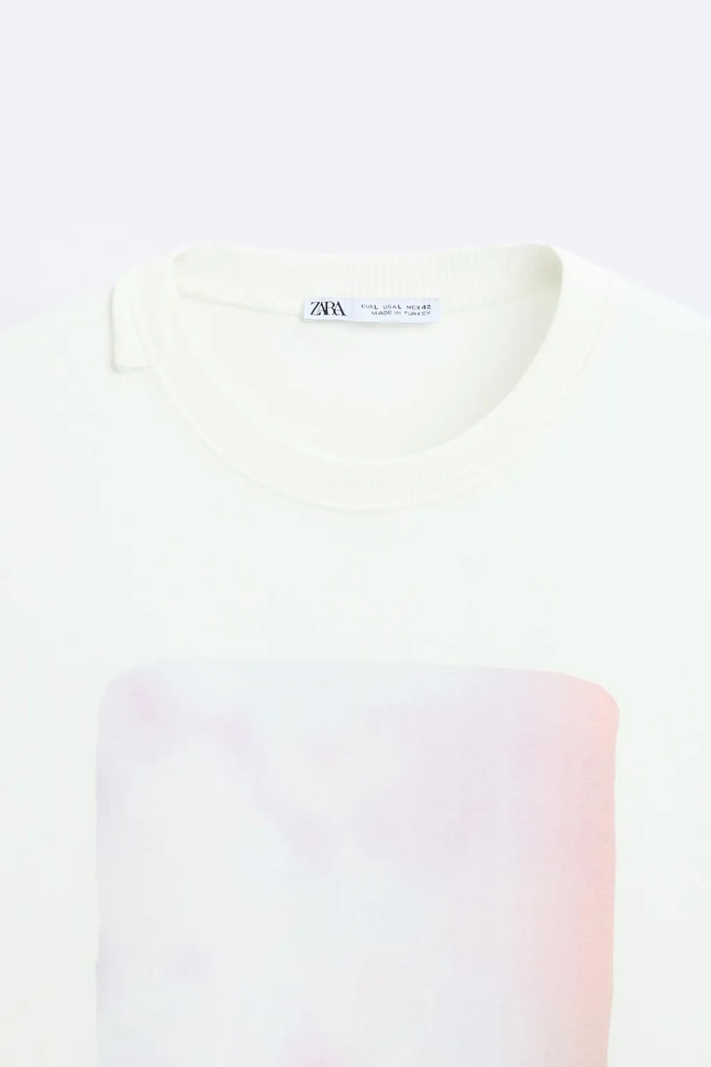 Camiseta relaxed fit. Cuello redondo con acabado asimétrico y manga corta. Estampación combinada a contraste en delantero.