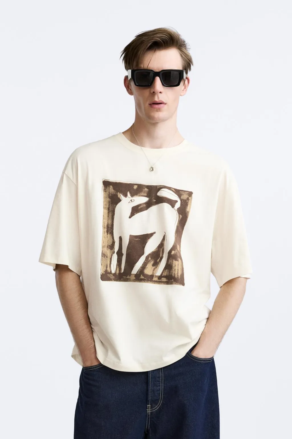 Camiseta relaxed fit. Cuello redondo y manga corta. Estampado combinado a contraste en delantero