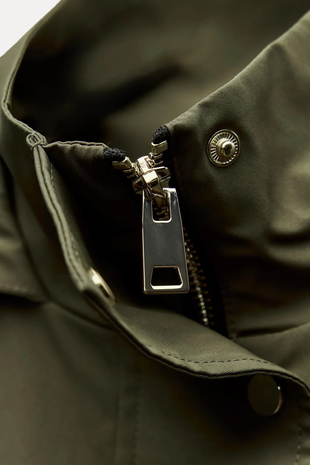 Cazadora de cuello subidoy capucha ajustable con cordón elástico y stoppers. Manga larga. Bolsillos en delantero de vivo. Forro interior combinado. Cintura ajustable con cordón elástico y stoppers. Cierre frontal con cremallera y botones a presión.