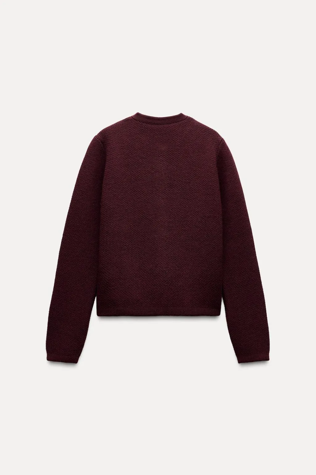Chaqueta de punto liso con cuello redondo y manga larga. Bolsillos delanteros de plastrón. Cierre frontal con botones dorados.