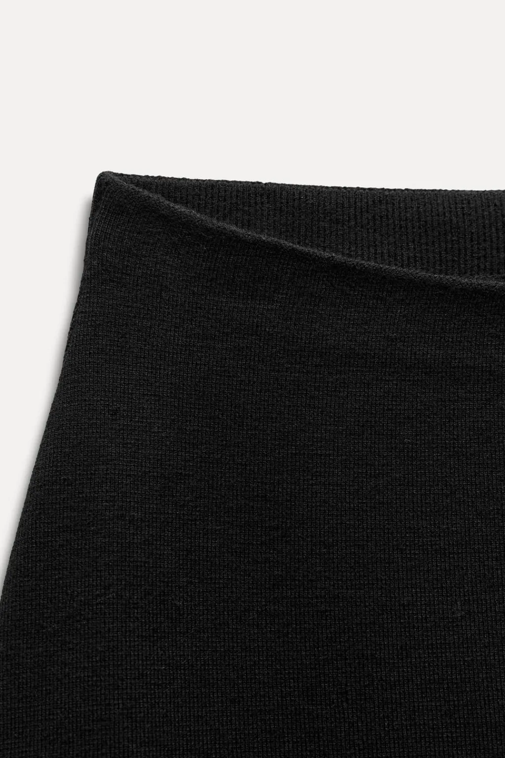 Falda de punto liso con tiro alto y cintura elástica. Bajo en evasé.