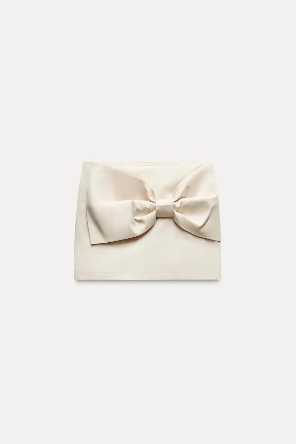 Falda mini de tiro medio. Detalle de maxi lazo en delantero. Forro interior combinado a tono. Cierre lateral con cremallera oculta encostura.