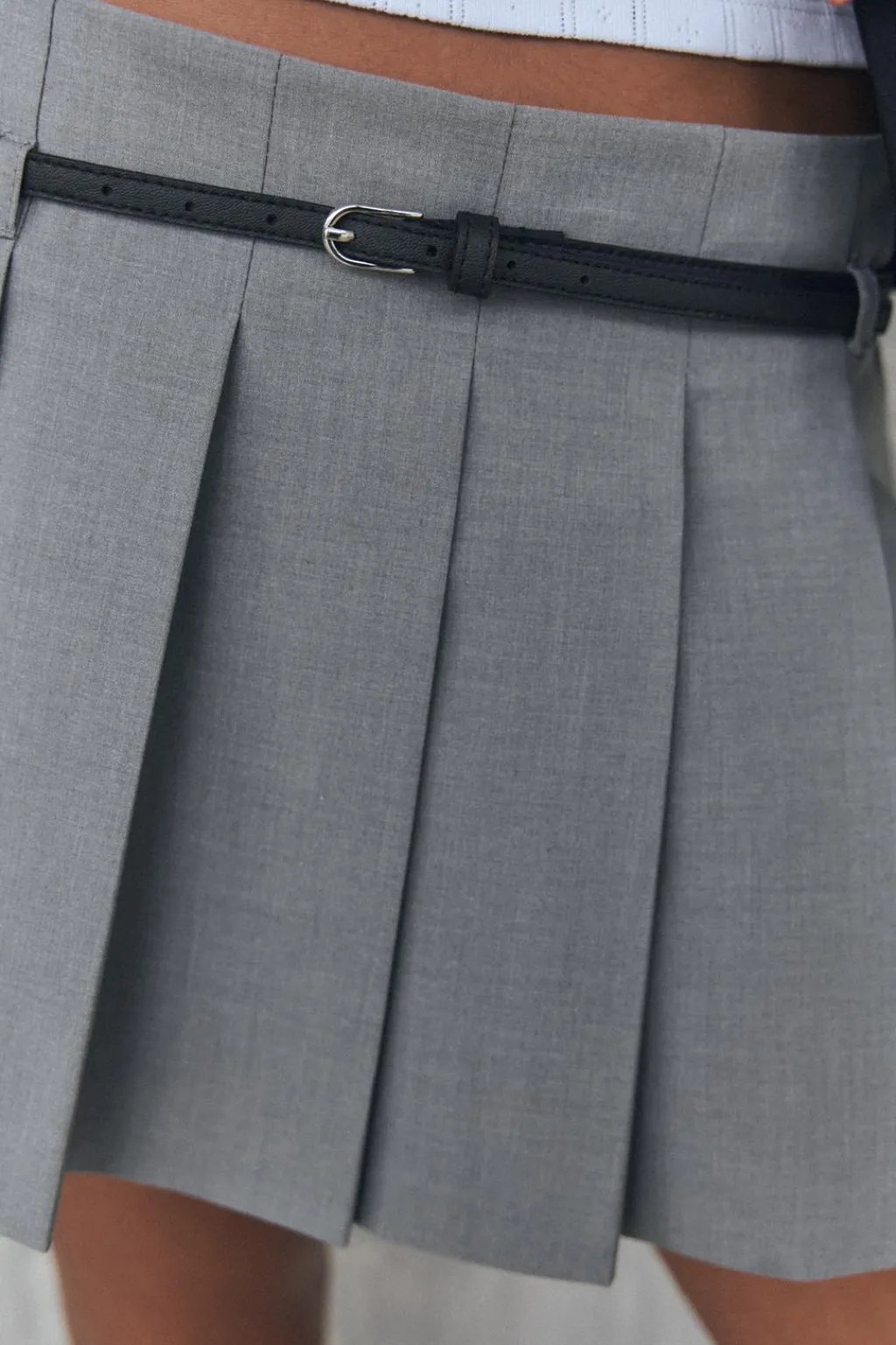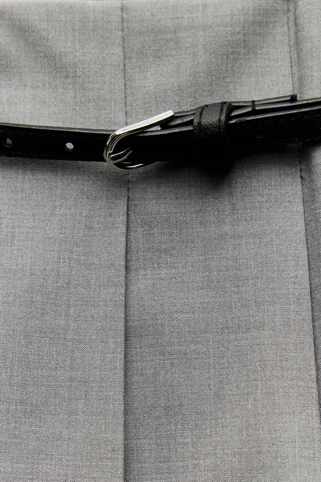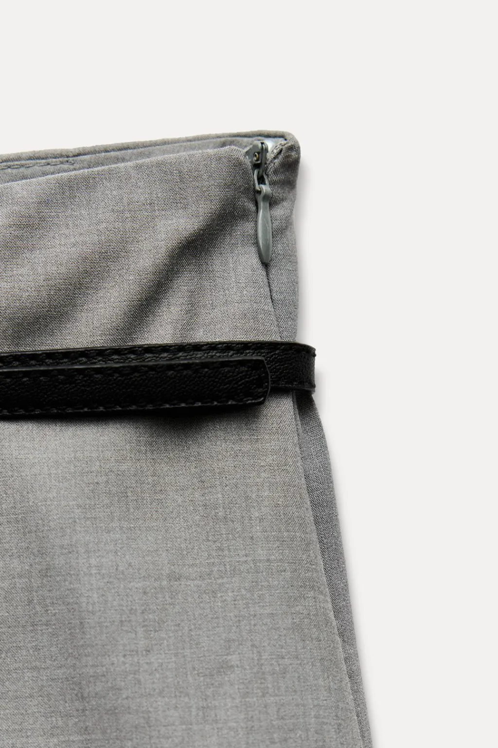 Falda pantalón de tiro medio. Falsos bolsillos de vivo en espalda. Detalle de tablas.Cinturón combinado a contraste. Cierre lateral con cremallera oculta en costura.