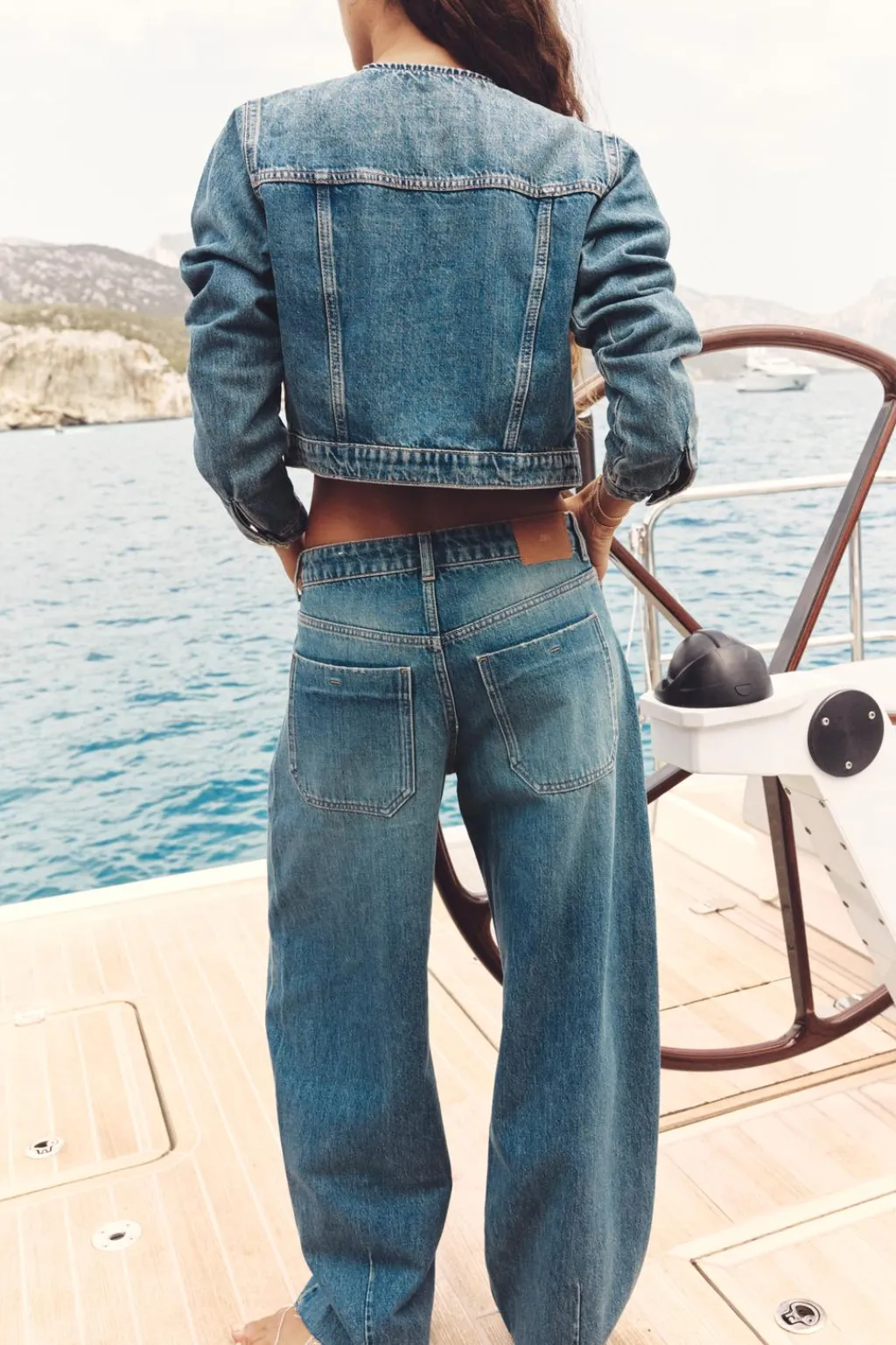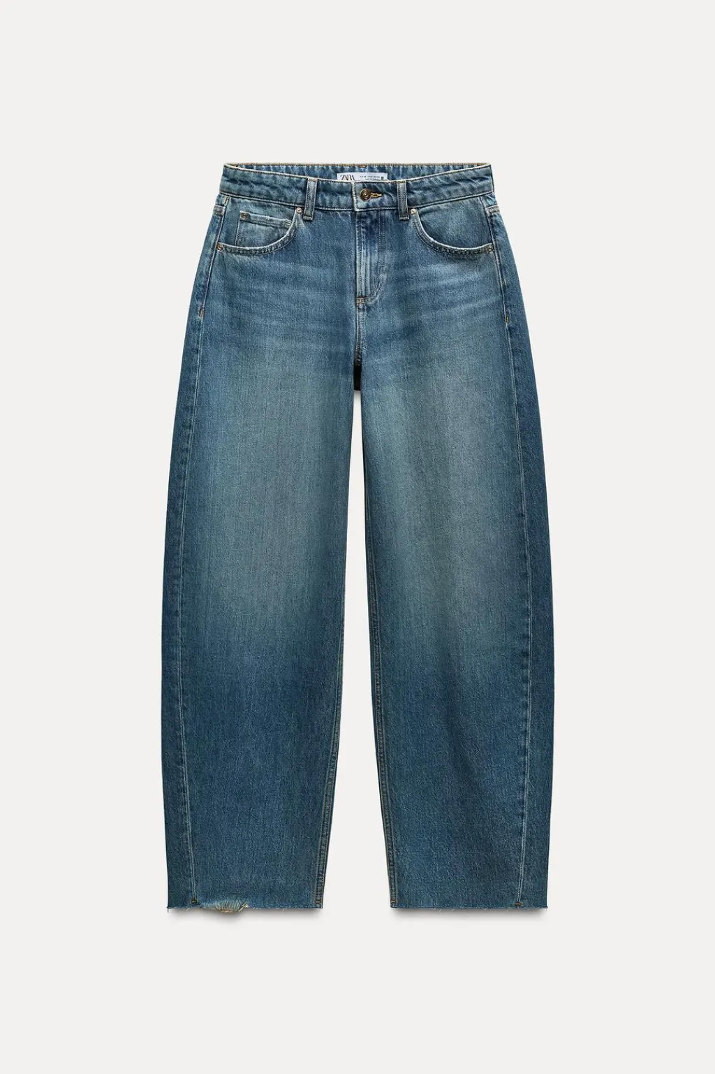 Jeans de tiro bajo con trabillas y cinco bolsillos. Efecto lavado. Bajo acabado sin costuras. Cierre frontal con cremallera y botón metálico.