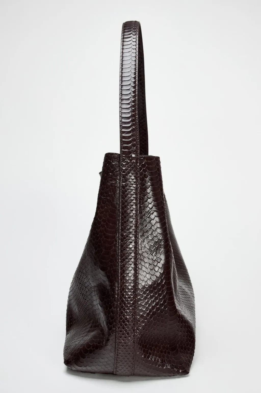 Bolso formato maxi saca en piel. Cuerpo en relieve. Cierre mediante hebilla. Cartera con bolsillo extraíble.