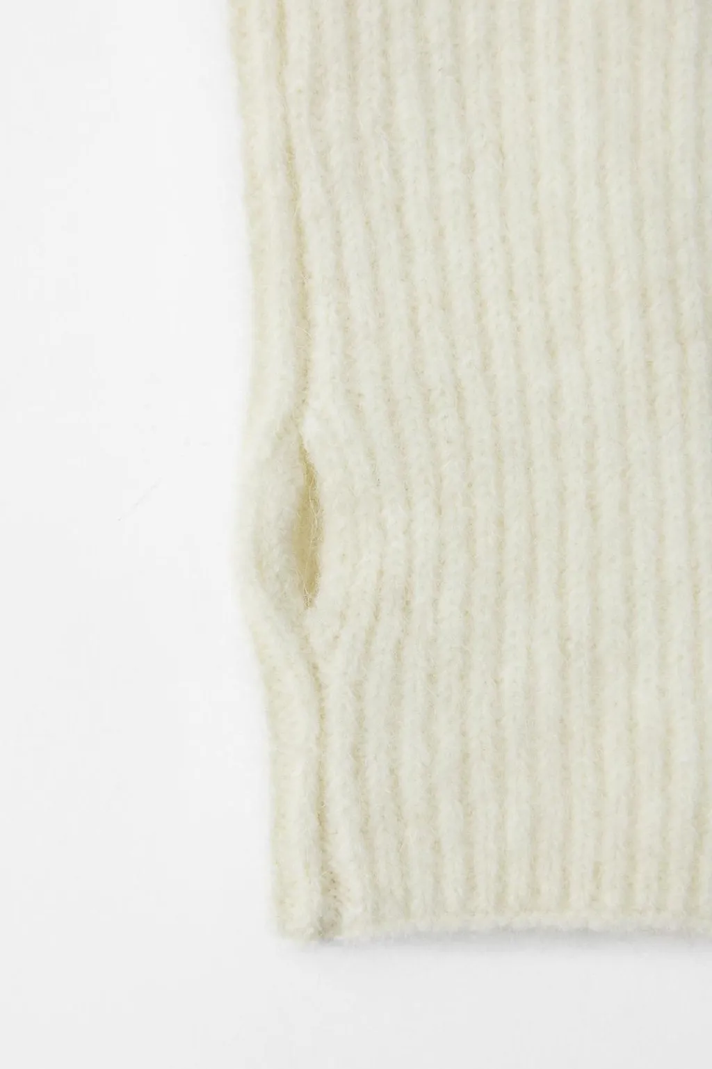 Mitones cortos confeccionados en mezcla de lana y alpaca. Detalle de lazo en relieve con aplicación de abalorios combinados a contraste.