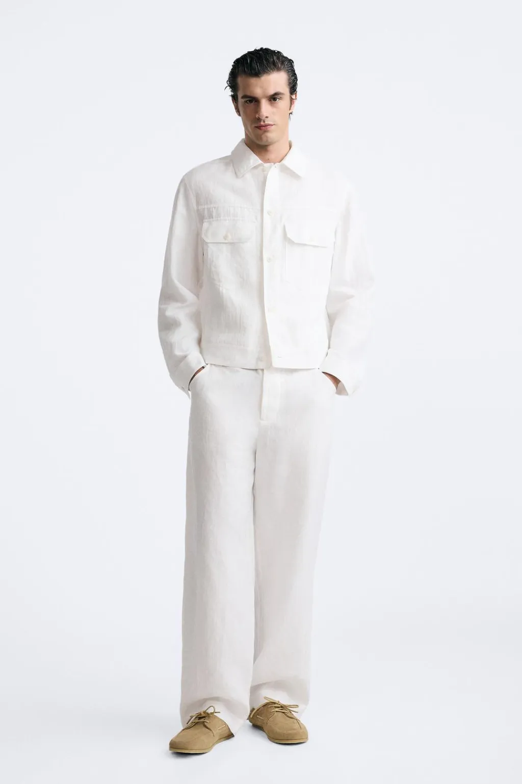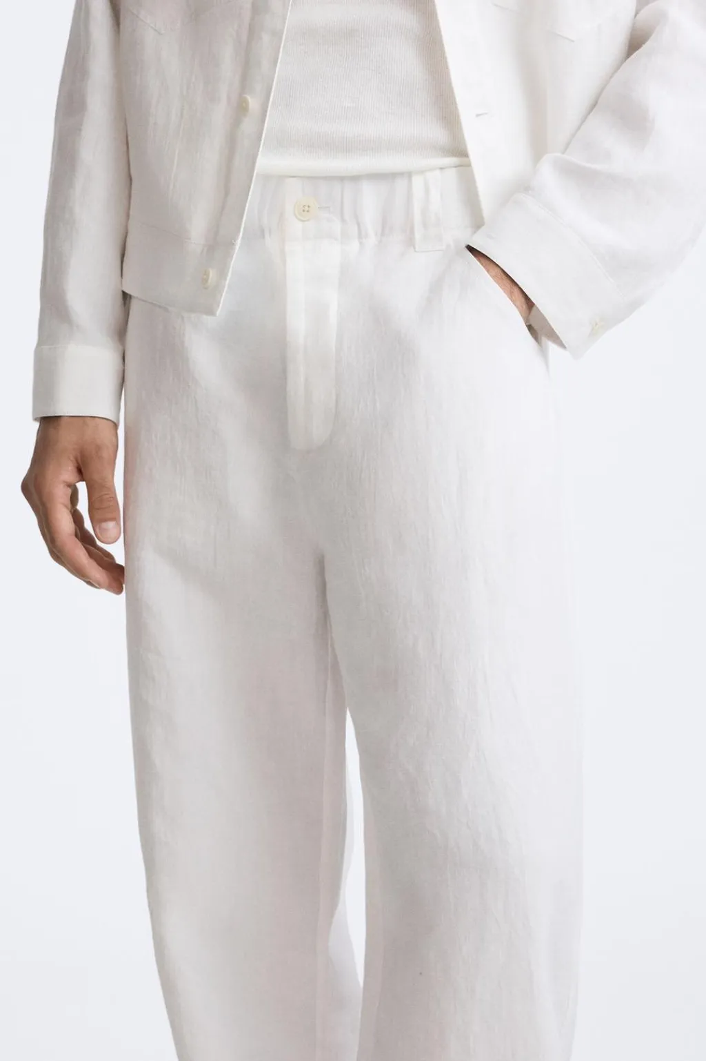 Pantalón relaxed fit confeccionado en tejido de cáñamo. Cintura elástica ajustable con cordón interior.Bolsillos frontales y detalle de bolsillos traseros de plastrón. Cierre frontal de botonadura