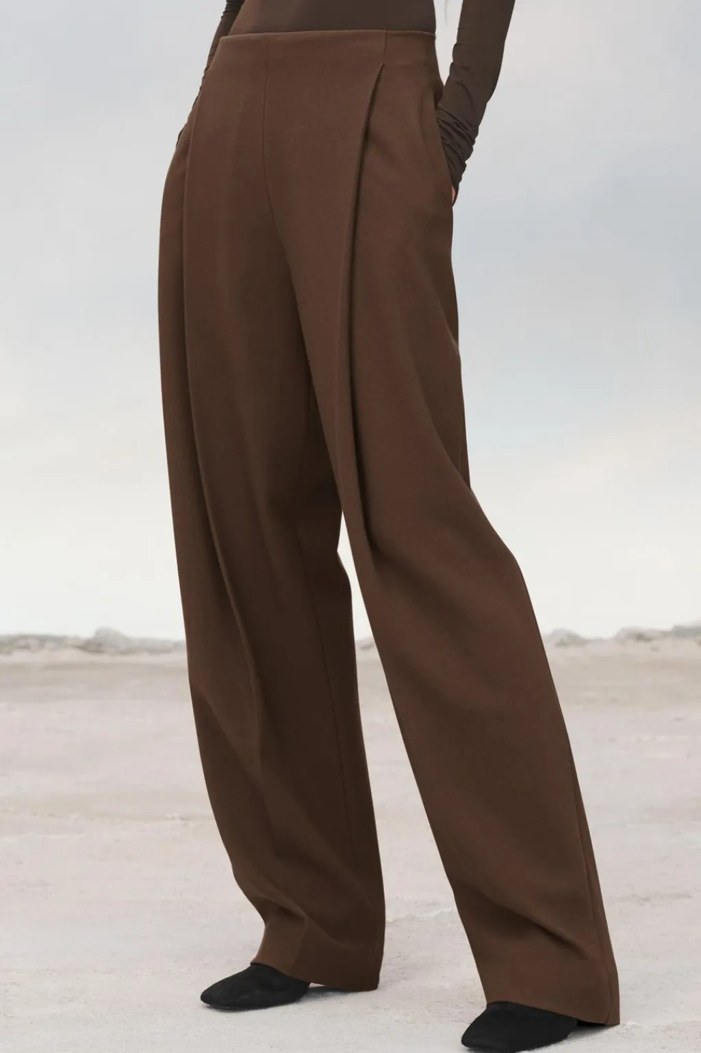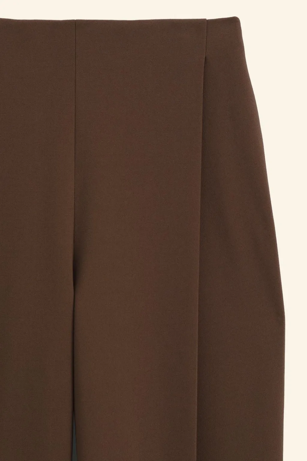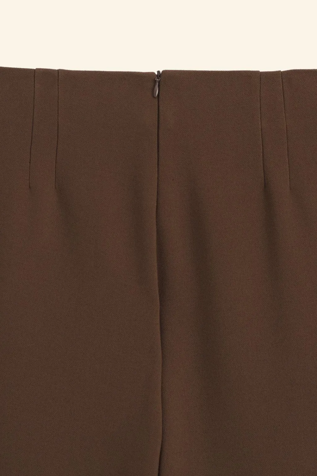 Pantalón de tiro alto confeccionado en hilatura con viscosa 27%. Detalle de pinzas en delantero. Cierre en espalda con cremallera oculta en costura.