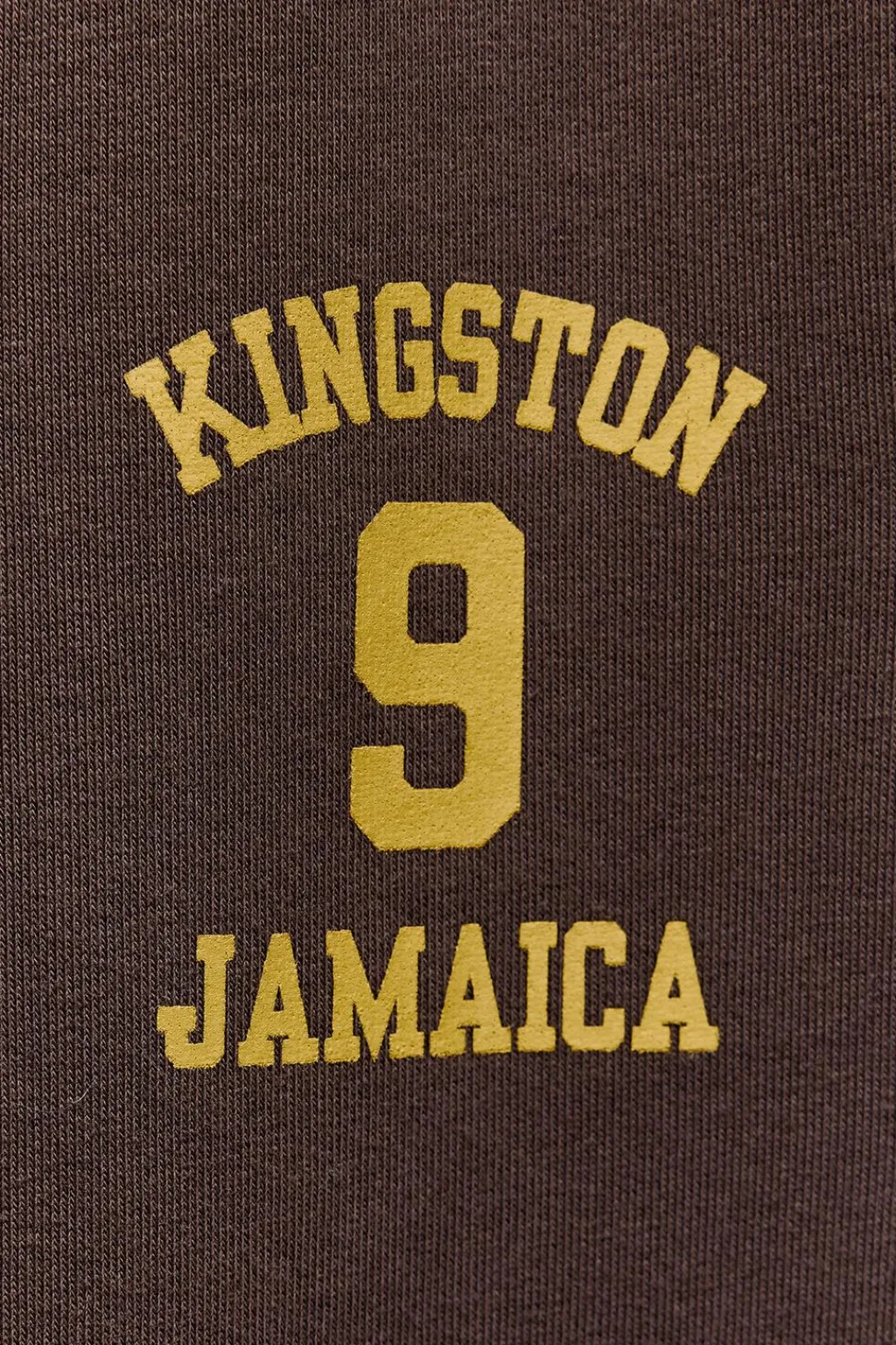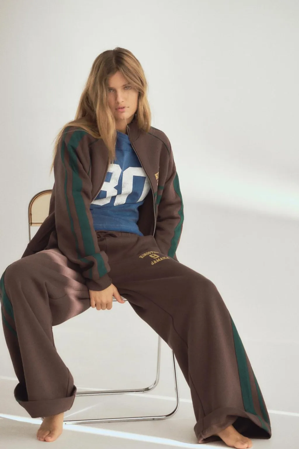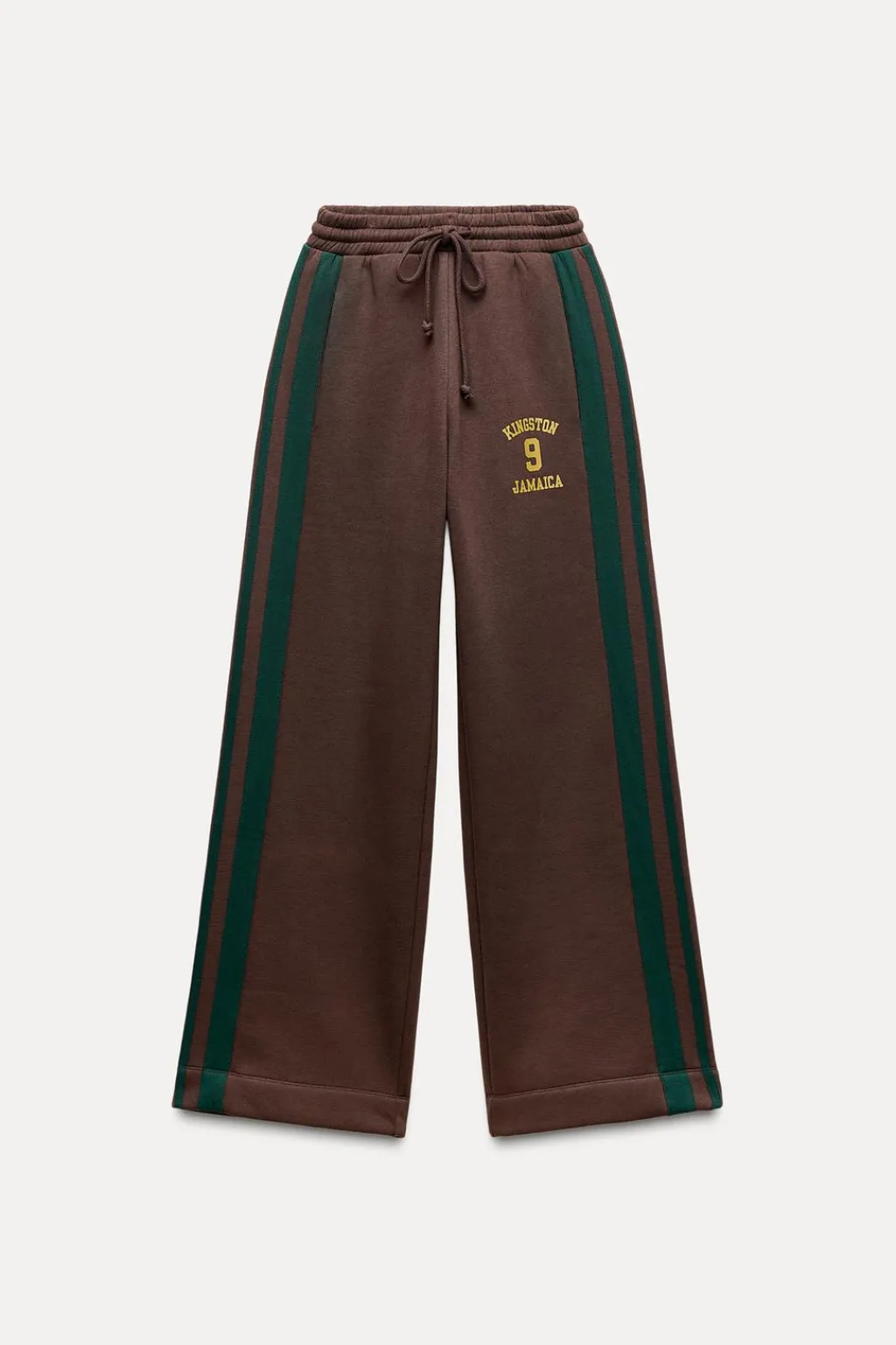 Pantalón de tiro alto con cintura elástica ajustable con cordones. Bolsillos laterales. Detsalle de bandas combinadas. Texto y número en delantero combinado a contraste.