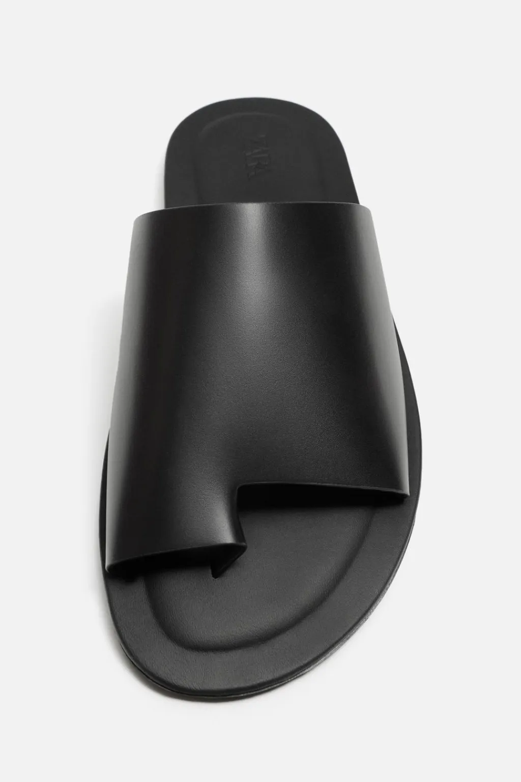 Sandalia tipo pala fabricada en piel. Construcción envolvente. Ajuste en el dedo para facilitar el confort durante su uso. Suela en mismo tono de color que el corte.
