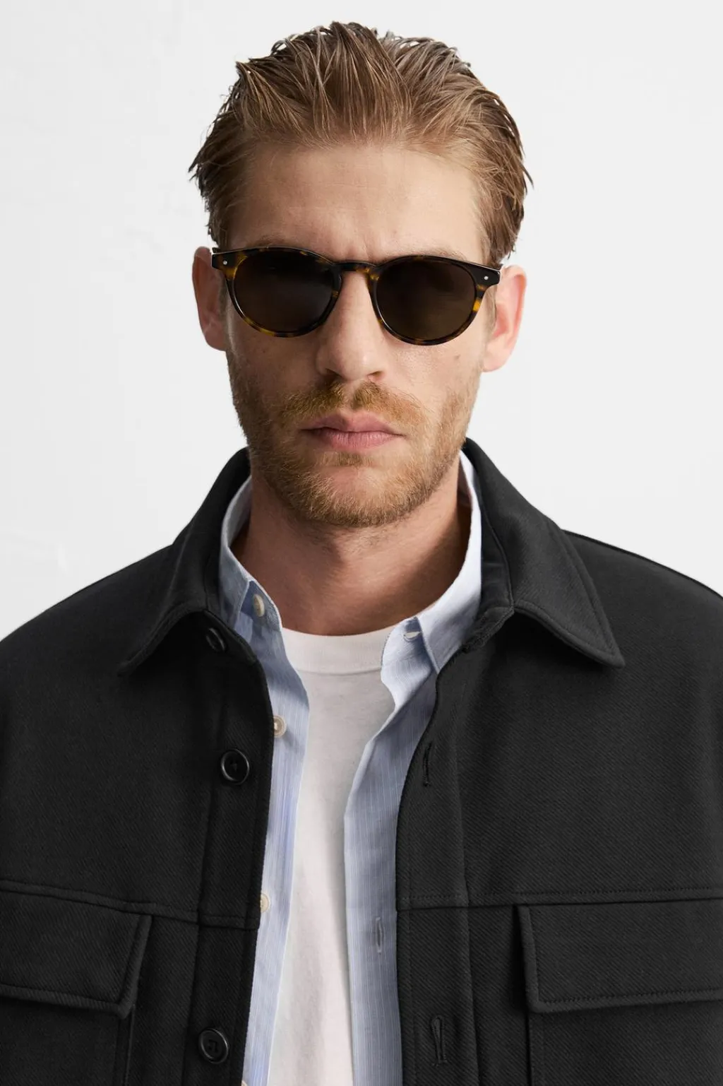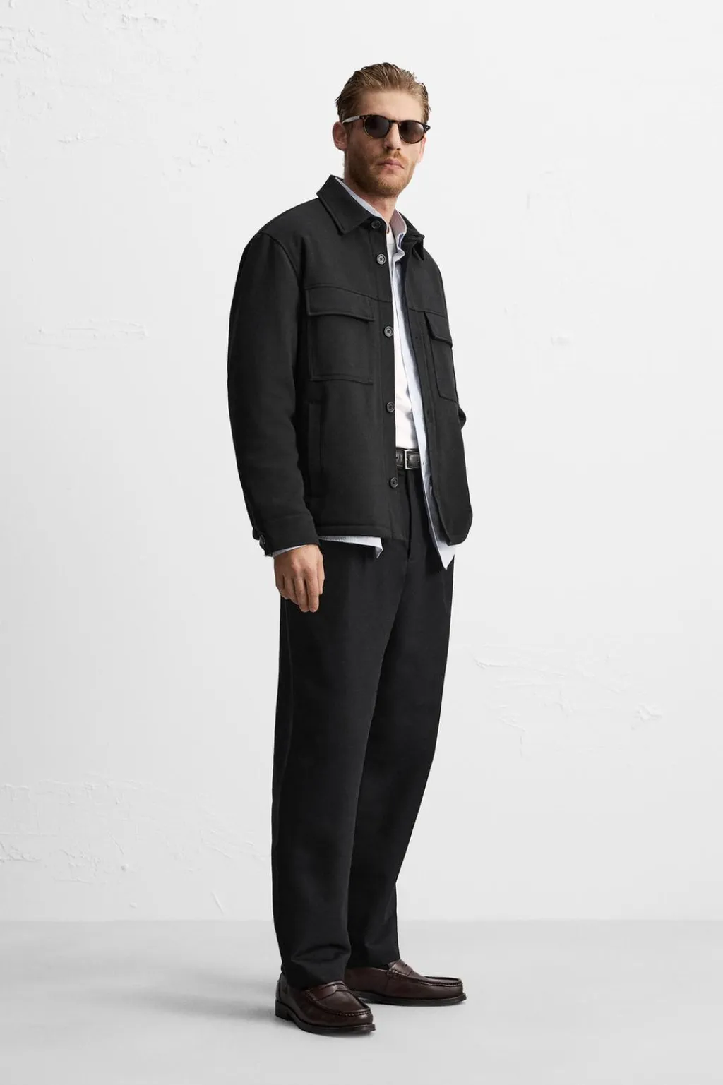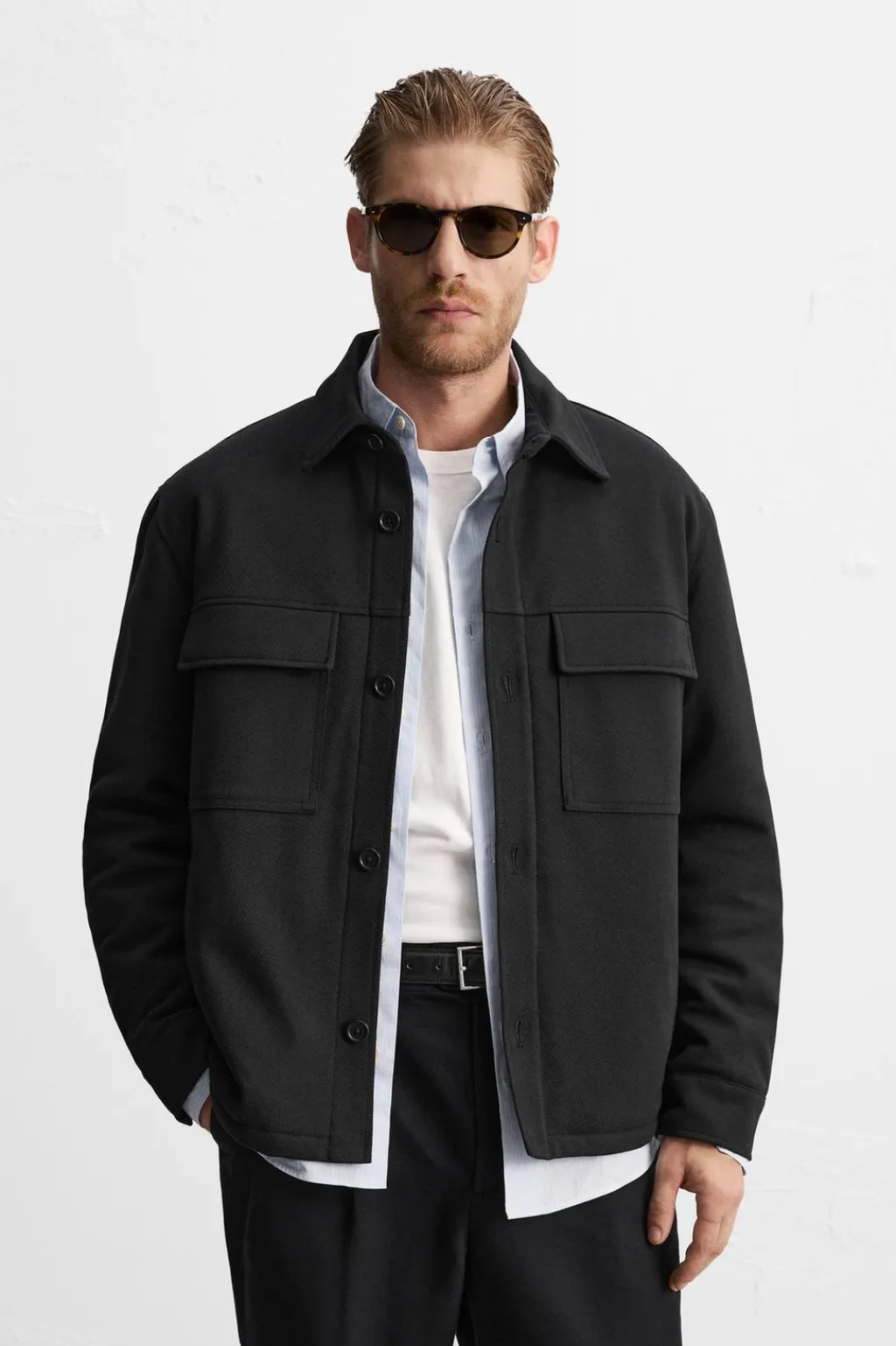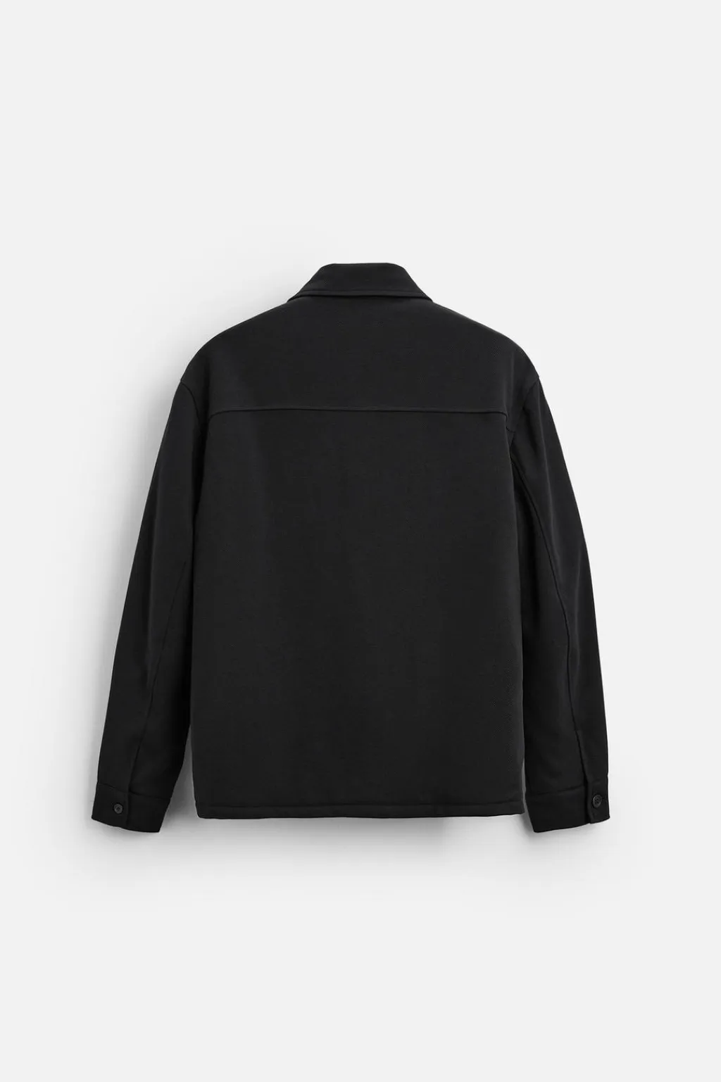 Sobrecamisa relaxed fit confeccionada en tejido con elasticidad ligeramente acolchada en su interior. Cuello solapa y manga larga acabada en puño con botón. Bolsillos de plastrón con solapa en pecho y bolsillos de vivo en cadera. Cierre frontal de botonadura.