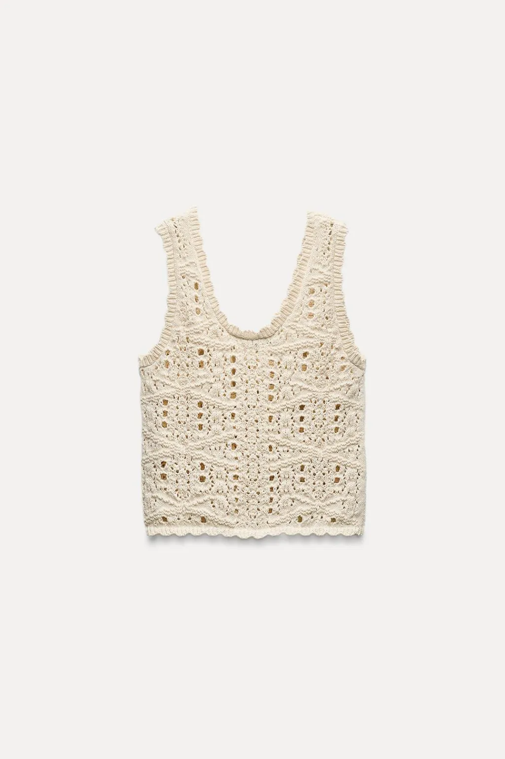 Top de escote redondo y manga sisa. Tejido en punto con aberturas.