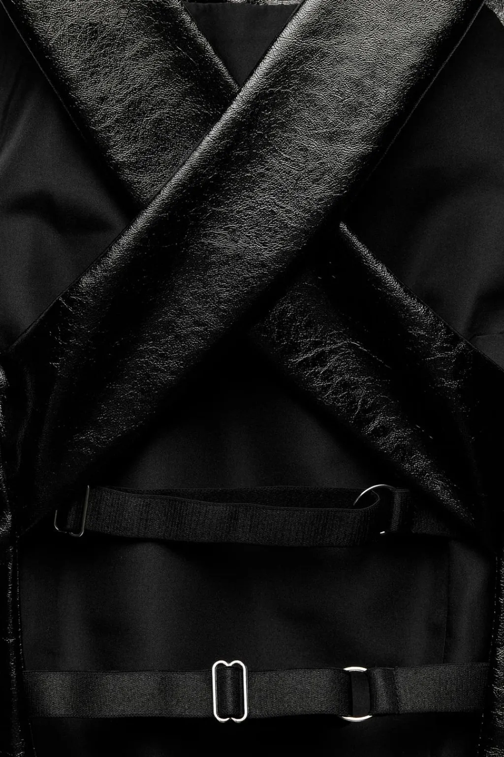 Top corto confeccionado en tejido efecto piel. Cuello redondo y tirantes anchos cruzados en espalda. Espalda descubierta con tiras elásticas ajustables. Forro interior combinado.