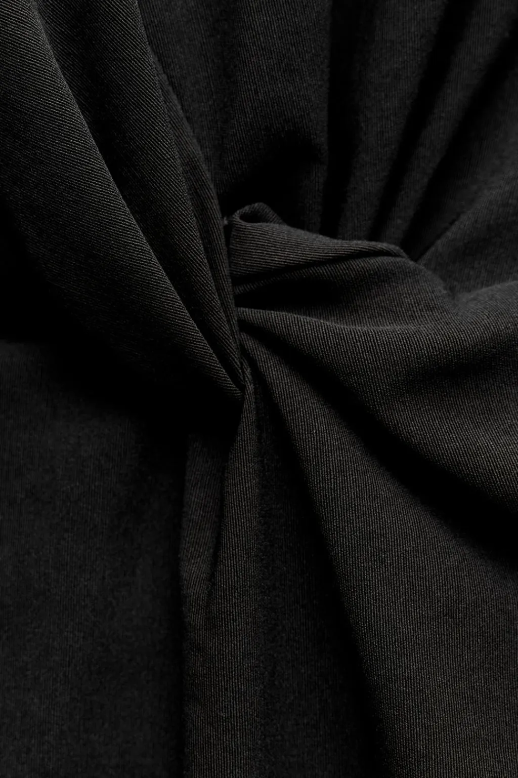 Vestido midi confeccionado en hilatura con mezcla de algodón. Cuello redondo con manga sisa y manga larga. Detalle de abertura lateral. Nudo con pliegues en delantero. Cierre en espalda con cremallera oculta en costura.