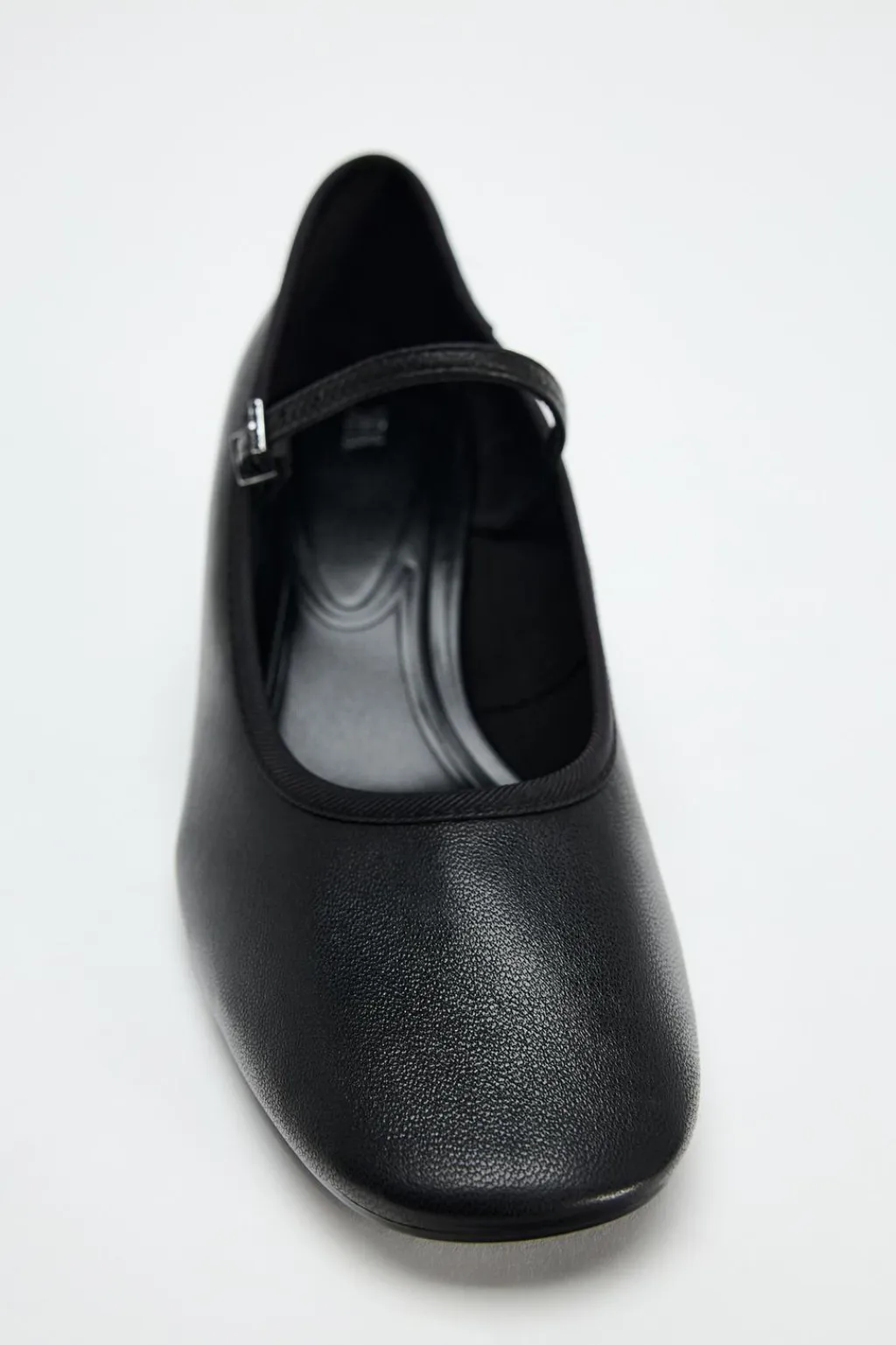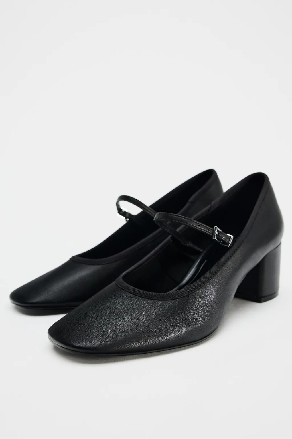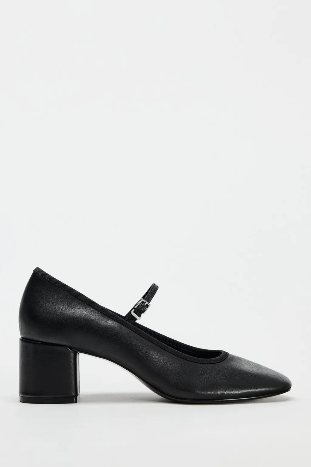 Zapato tipo tacón ancho. Detalle de hebilla en el empeine. Acabado en punta redonda.