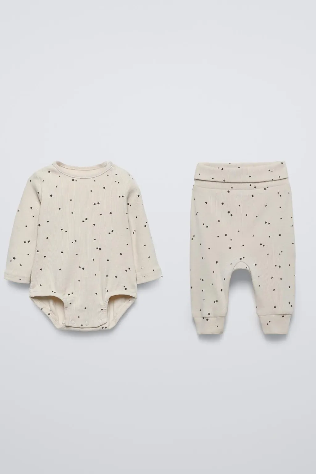 Pack de dos piezas. Body con cuello redondo y manga larga. Cierre botones presión en hombro y espalda. Legging con cinturilla elástica ajustable. Bajo acabado en puño.