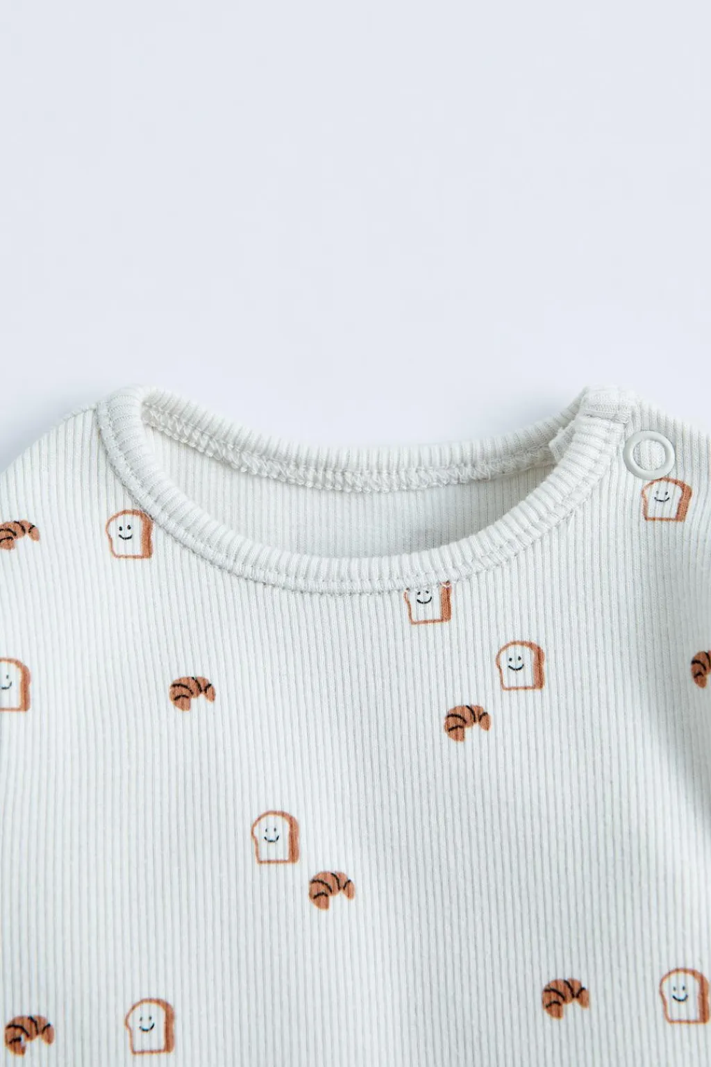 Body con cuello redondo y manga larga. Cierre botones presión en hombro y en bajo.