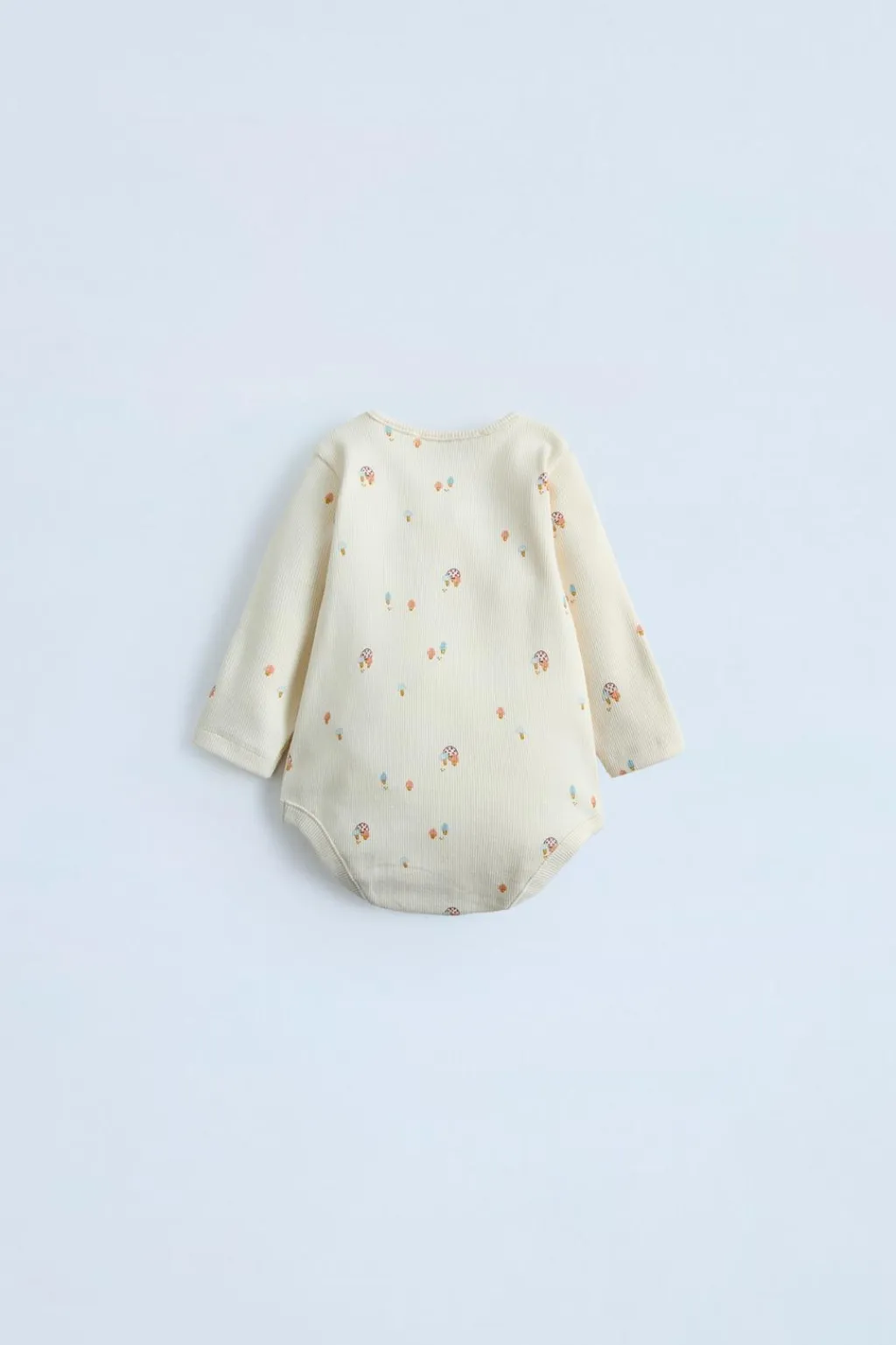 Body con cuello redondo y manga larga. Cierre botones presión en hombro y bajo.