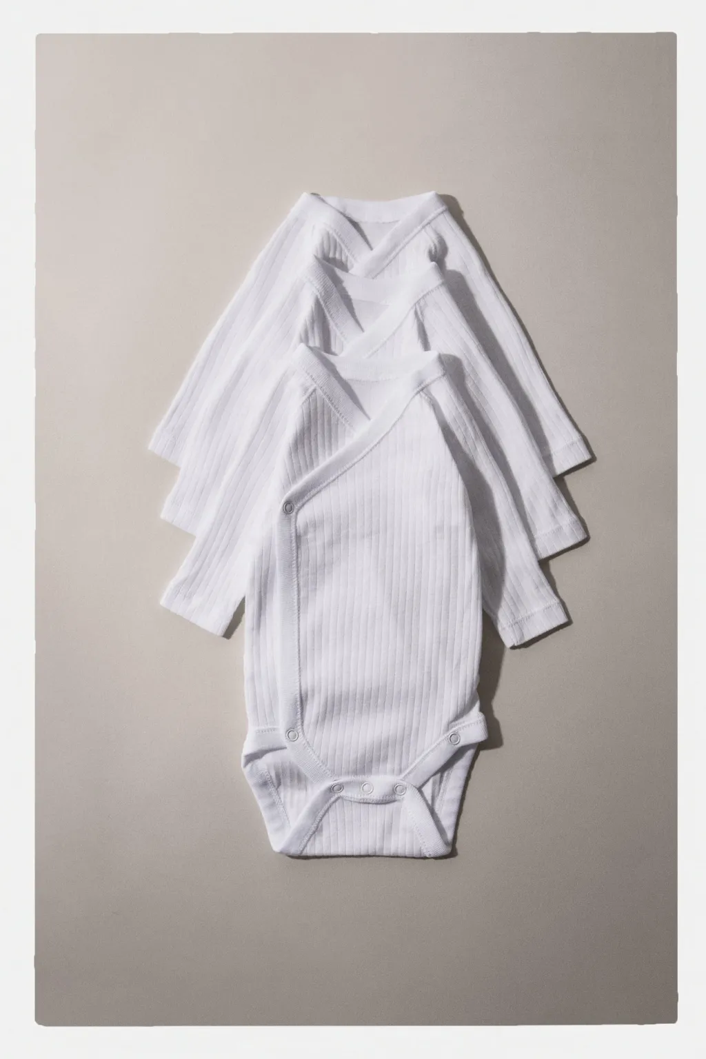 Pack de tres bodies con cuello kimono y manga larga. Cierre botones presión en bajo.