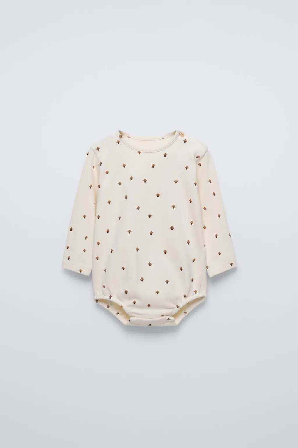 Body con cuello redondo y manga larga. Cierre botón en hombro y de tipo presión en bajo. Estampado all over.
