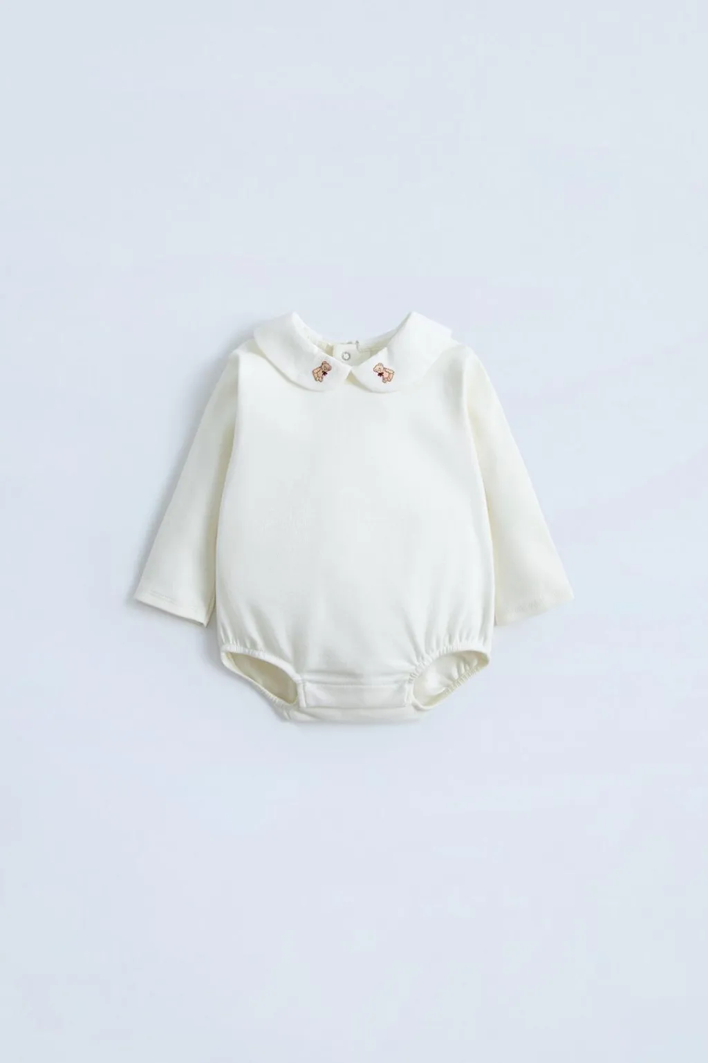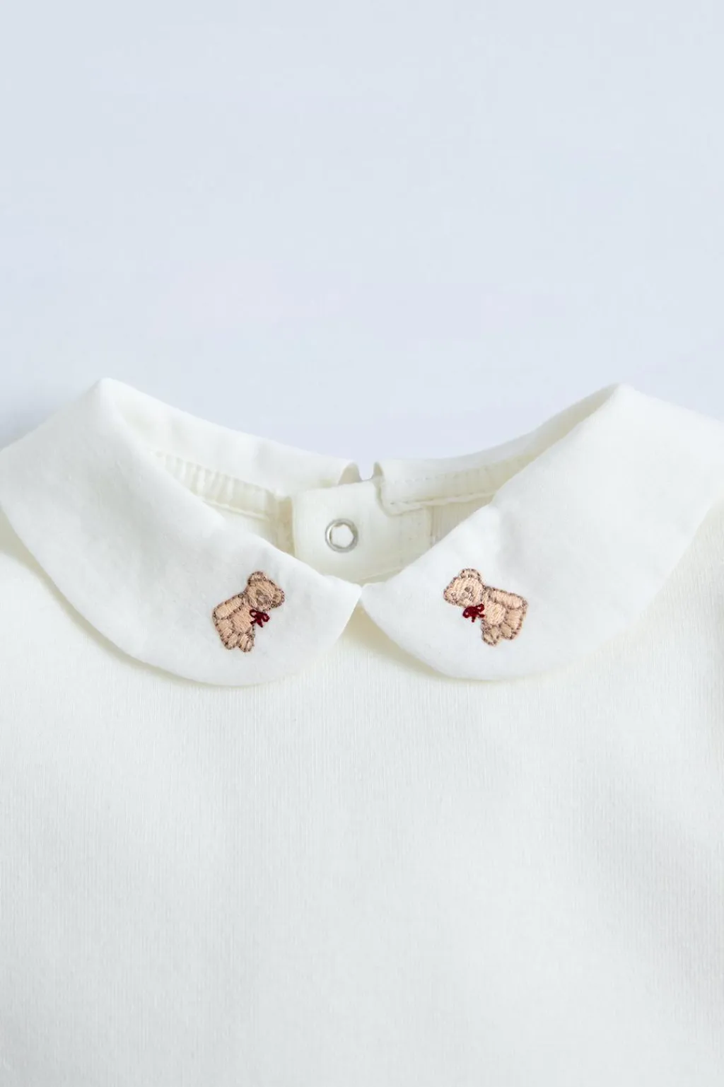Body con cuello bobo y manga larga. Cierre botones de tipo presión en espalda y bajo. Detalle ositos bordados en cuello.