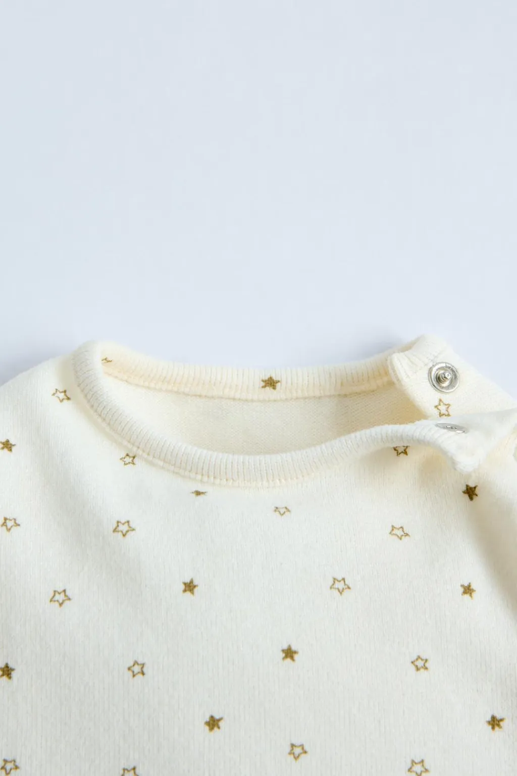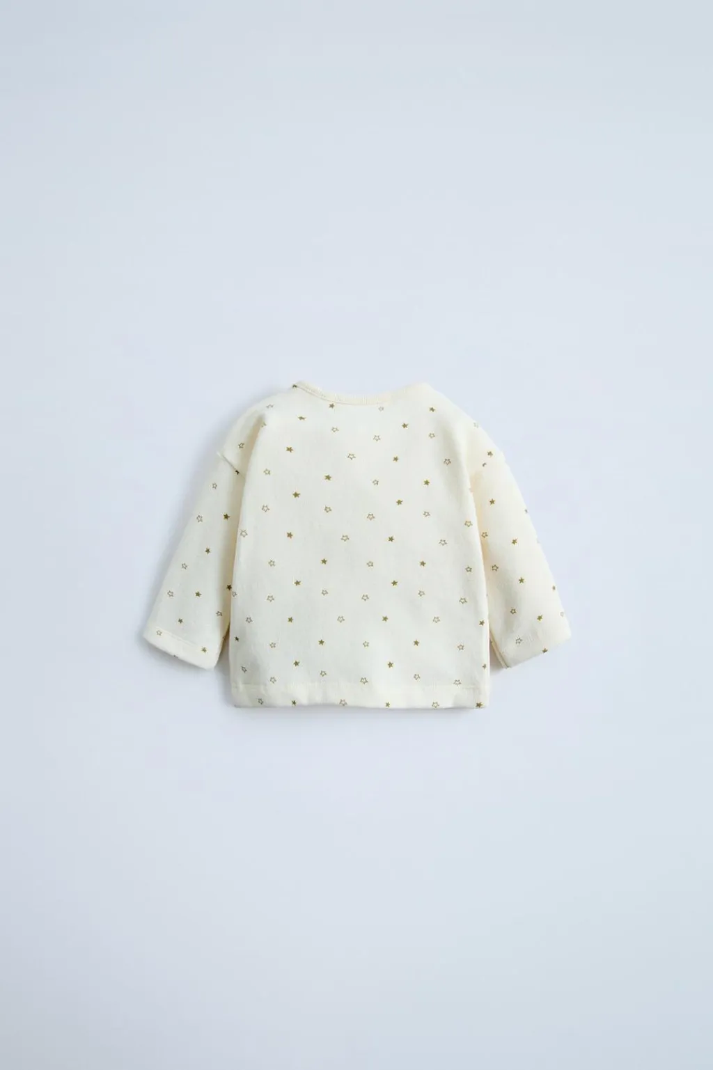 Camiseta con cuello redondo y manga larga. Cierre con botones tipo presión en hombro. Estampado estrellas.