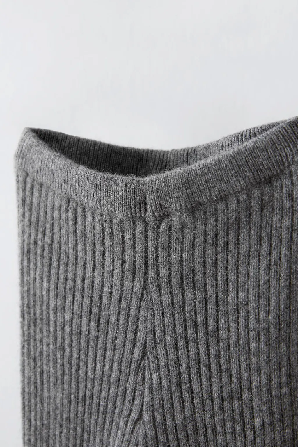 Legging con cinturilla elástica. Bajo acabado en vuelta. Tejido 100% cashmere.