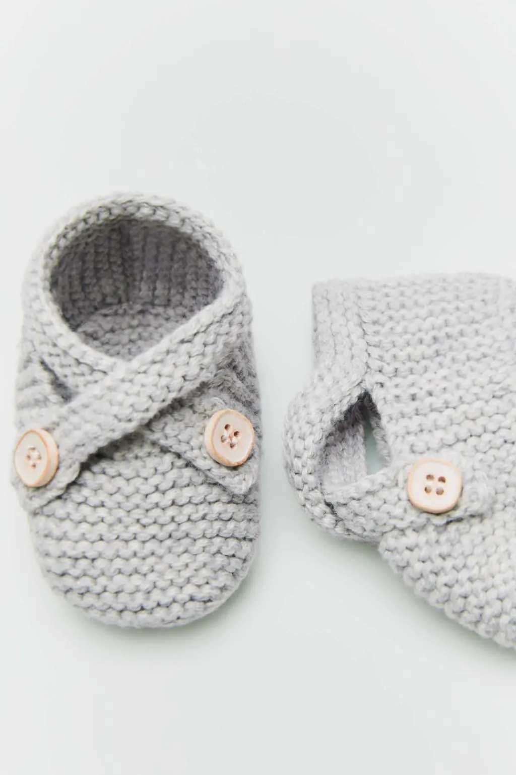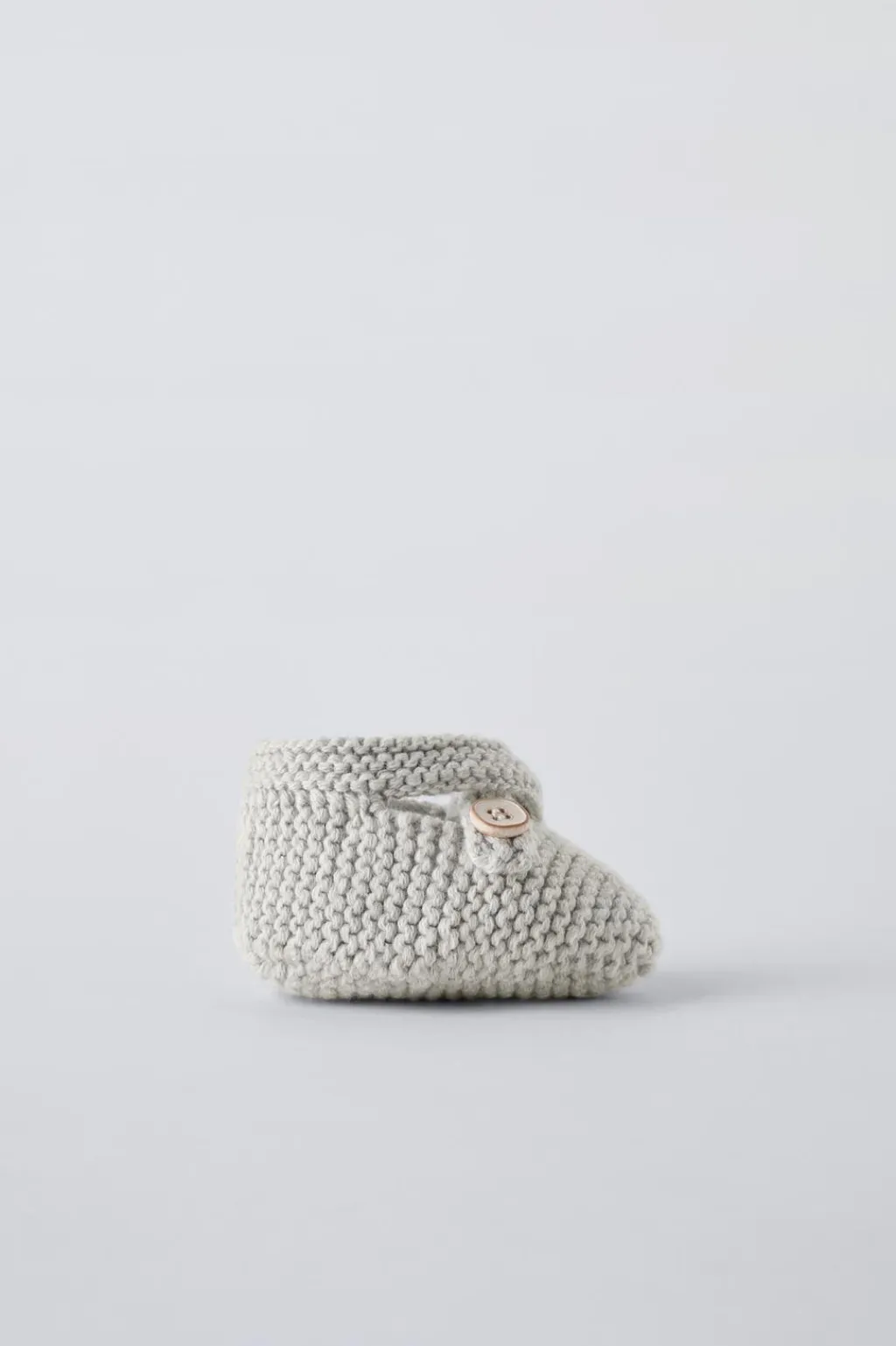 Patuco de punto 100% algodón. Cierre mediante tira cruzada con doble botón.