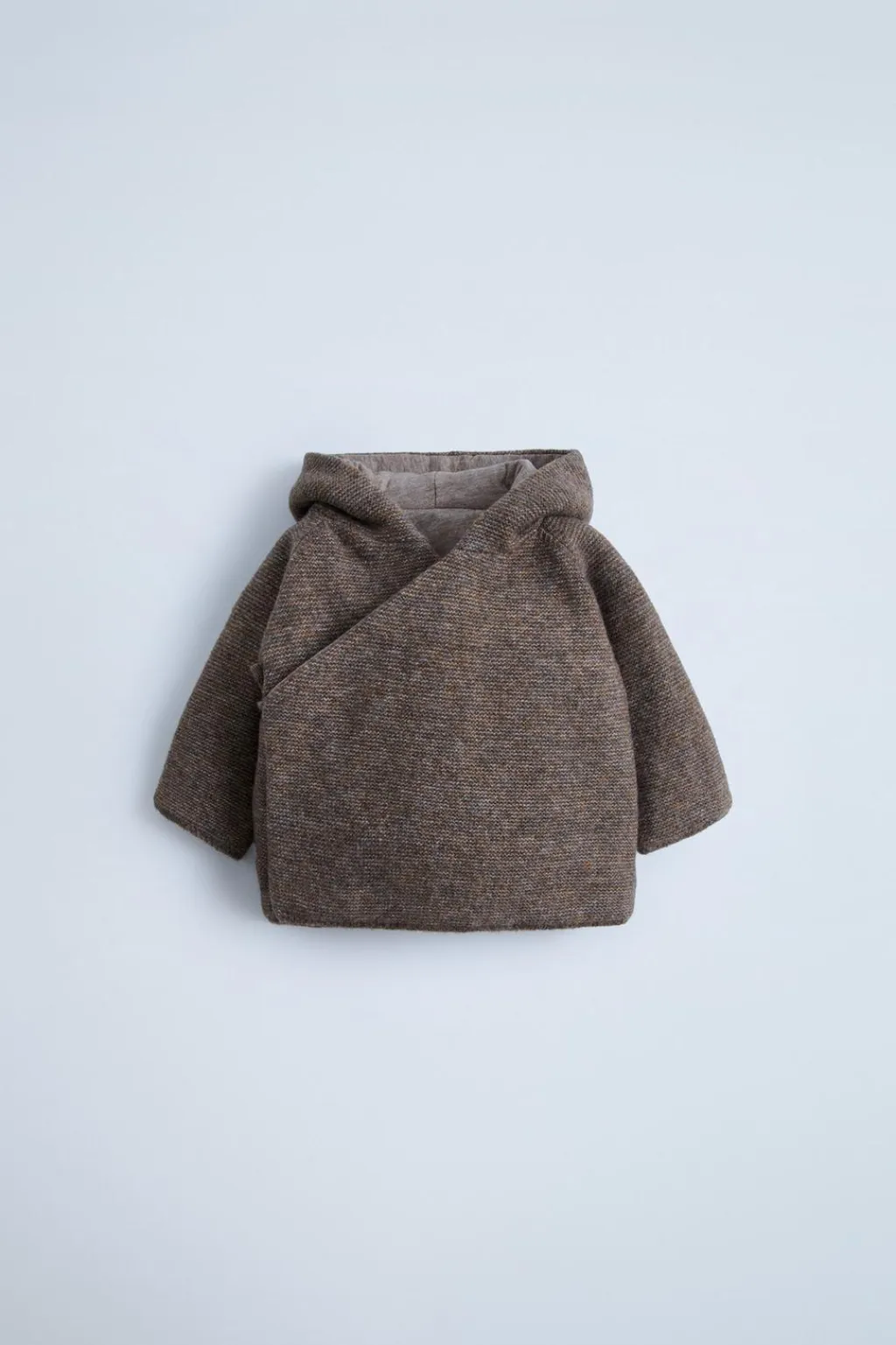 Chaqueta con capucha y manga larga. Cierre cruzado con lazo.