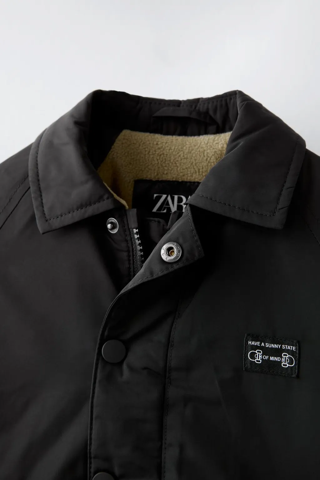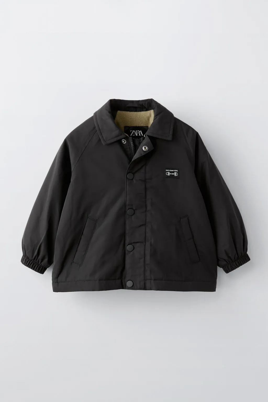 Parka ligera con cuello tipo camisero y manga larga acabada en goma. Cierre cremallera frontal oculta por solapa y cierre botones tipo presión. Bolsillos delanteros con detalle vivo. Aplique etiqueta en pechera. Forro interior en tejido polar y bolsillo con detalle vivo.