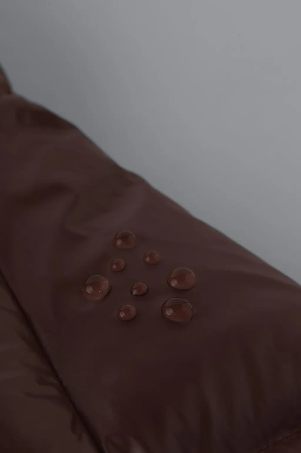 Plumífero con tejido especial repelente al agua, con 50% de pluma y 50% de plumón. Con capucha, cuello subido con cierre botones presión y manga larga acabada en puño interior. Cierre con cremallera frontal termosellada y botones tipo presión en laterales. Tejido interior calidad suave.