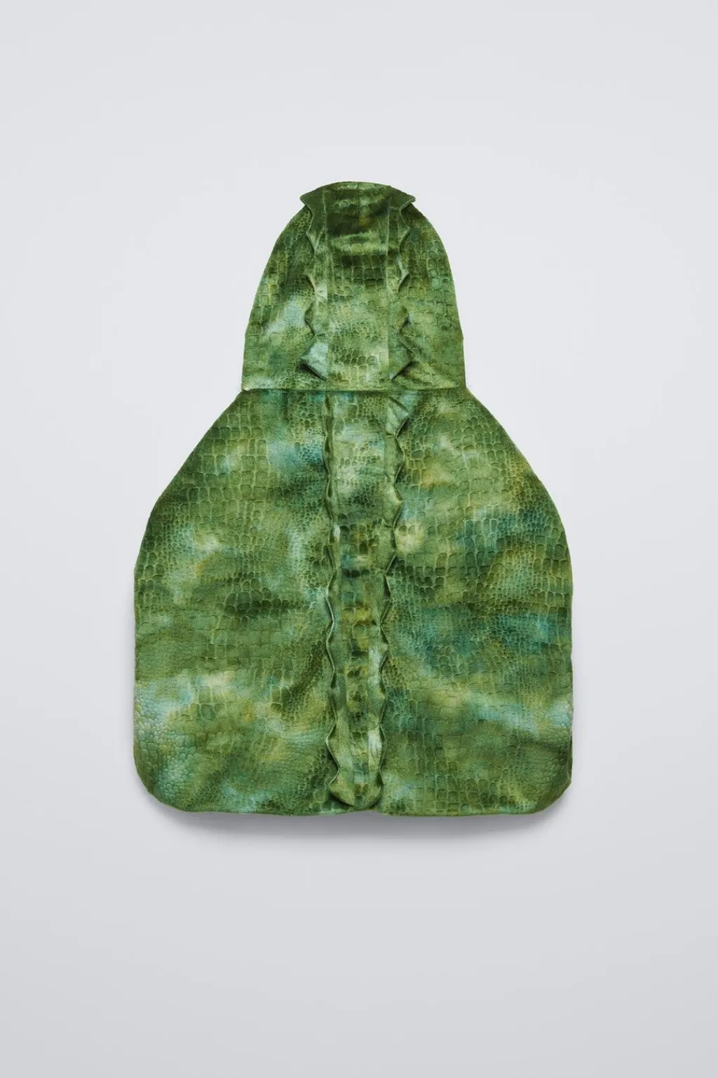 Capa con capucha de dinosaurio y mangas con guante en forma de garra. Forro interior en tejido polar.