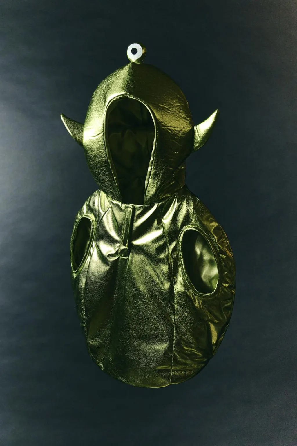 Disfraz con capucha y sin mangas. Aplique ojo y antenas en capucha. Cierre autoadhesivo en pechera.