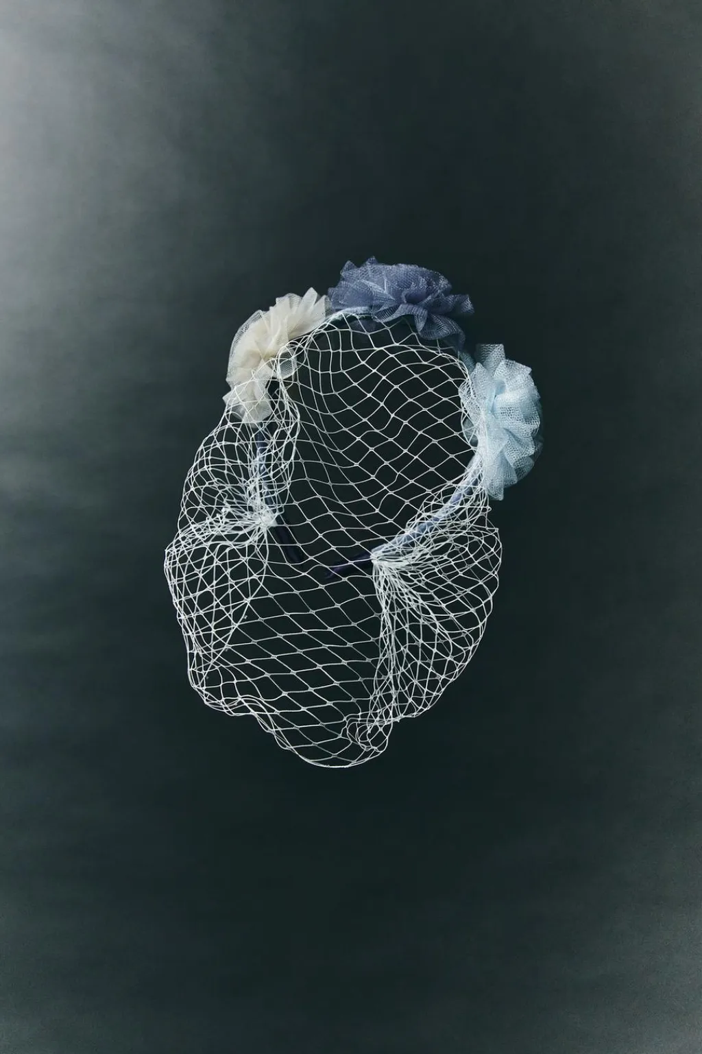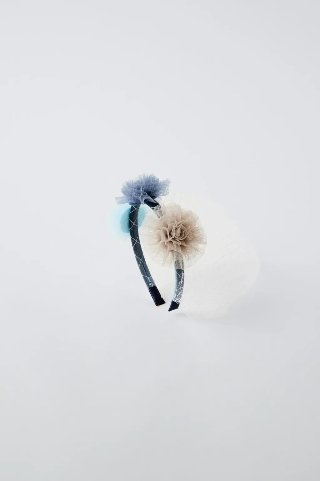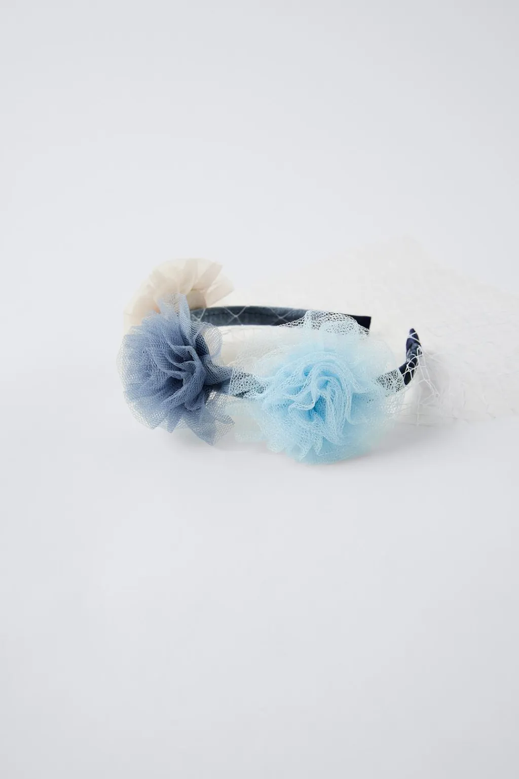 Diadema con aplique flores de tul y rejilla.