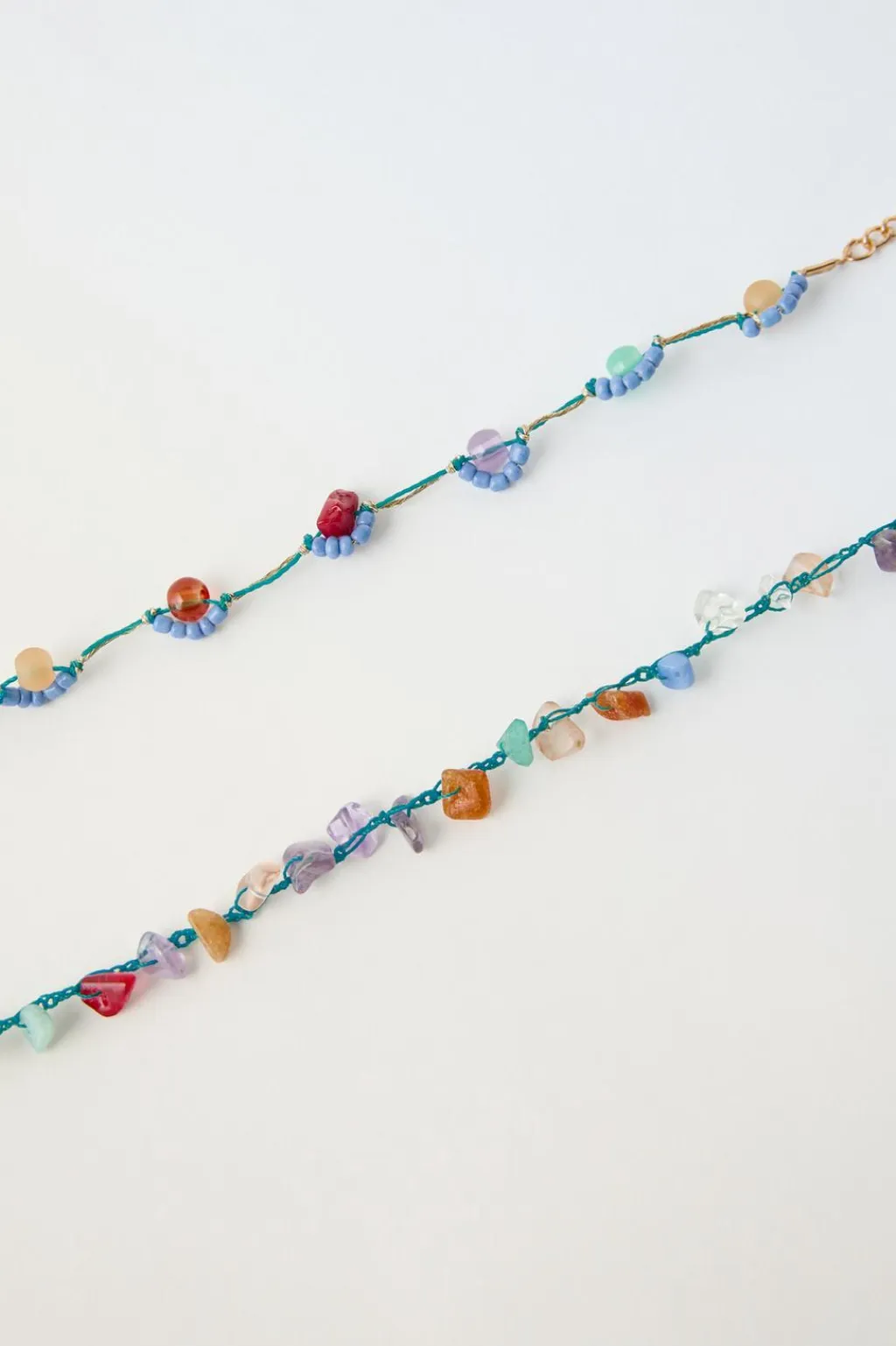 Pack de collar y pulsera ajustables. Detalle piedritas.