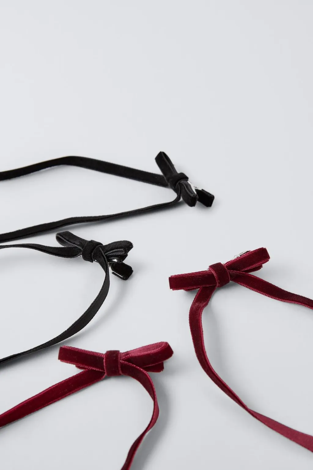 Pack de cuatro clips para el pelo. Aplique lazos en tejido velvet.